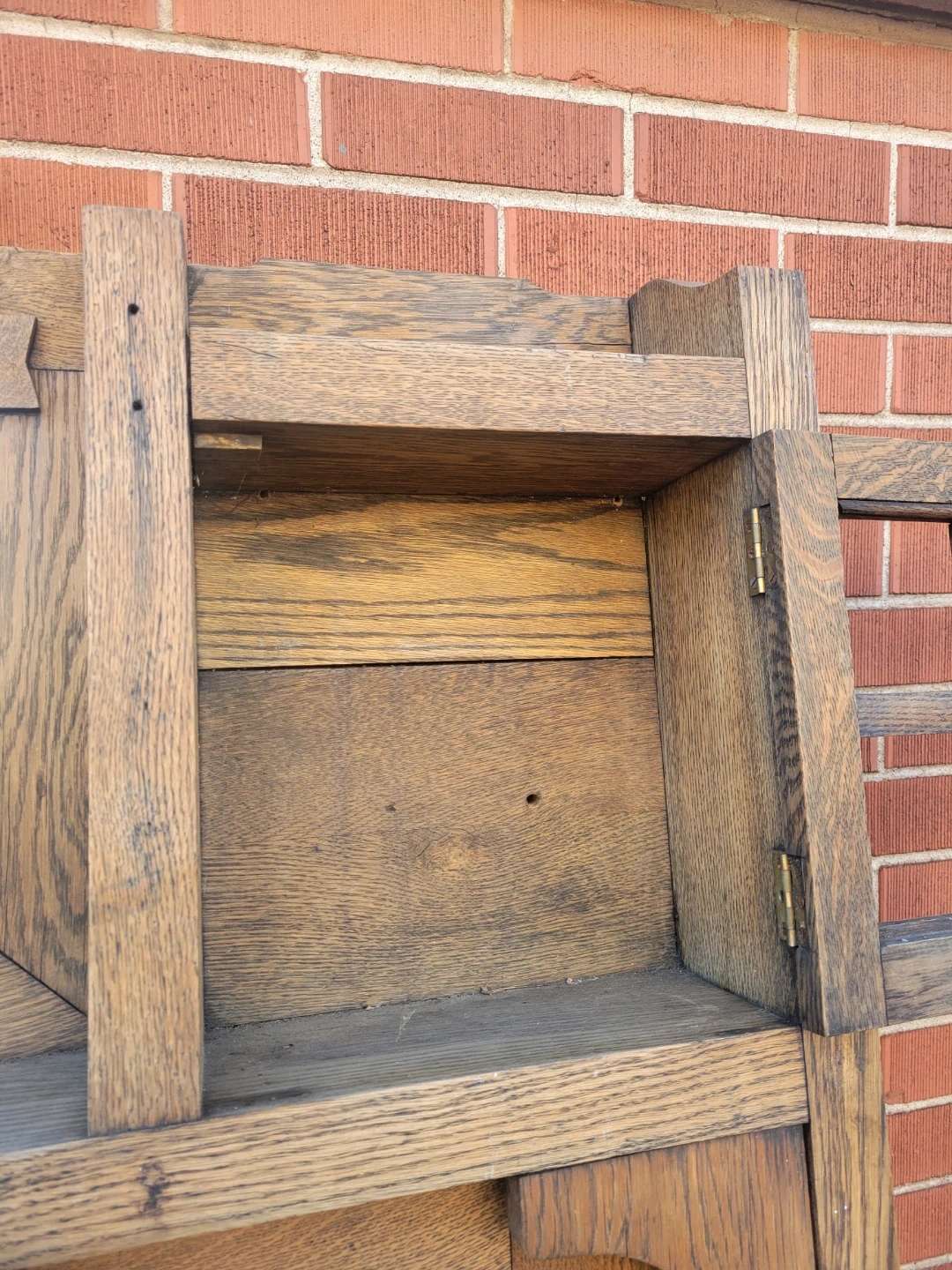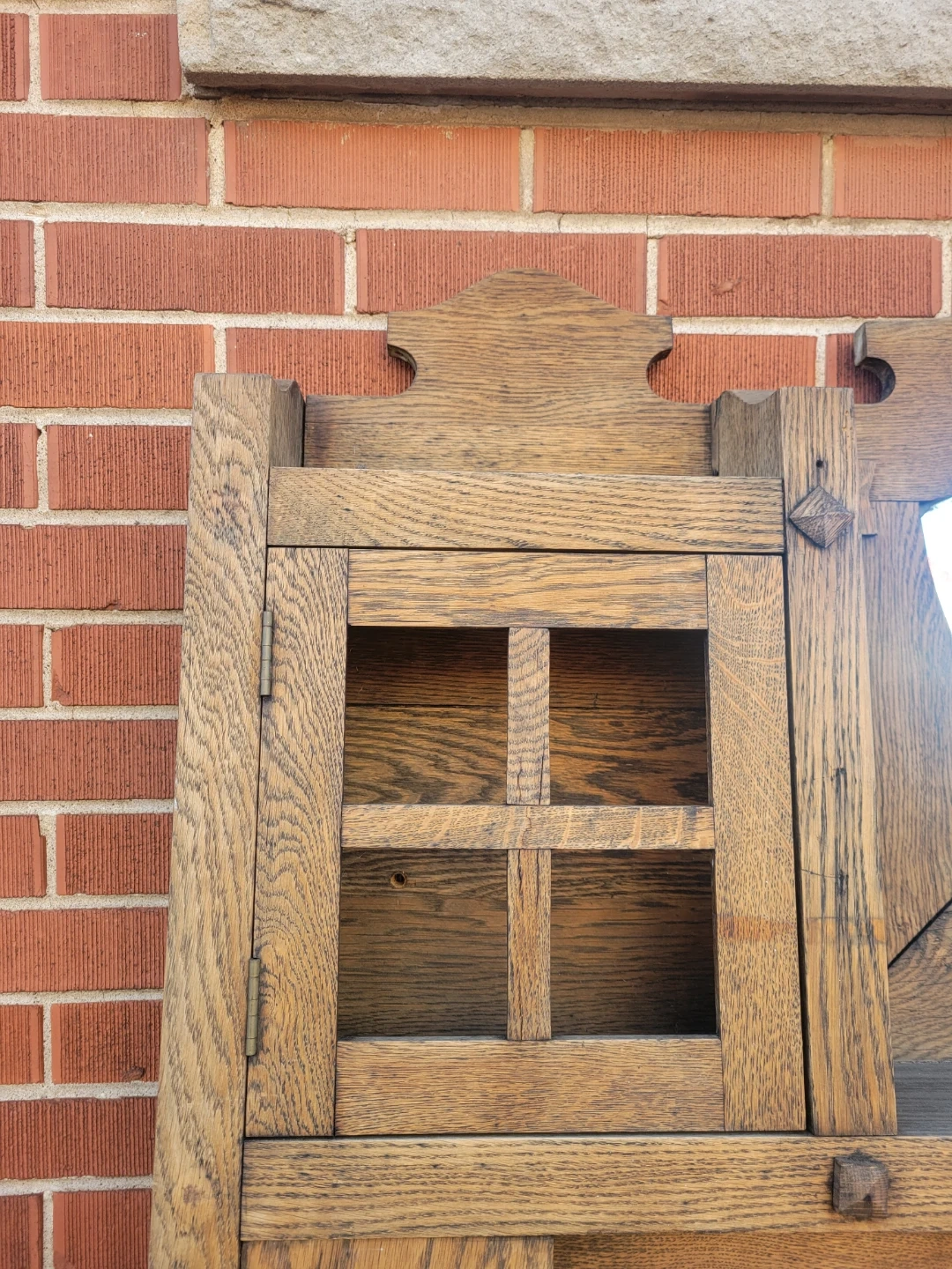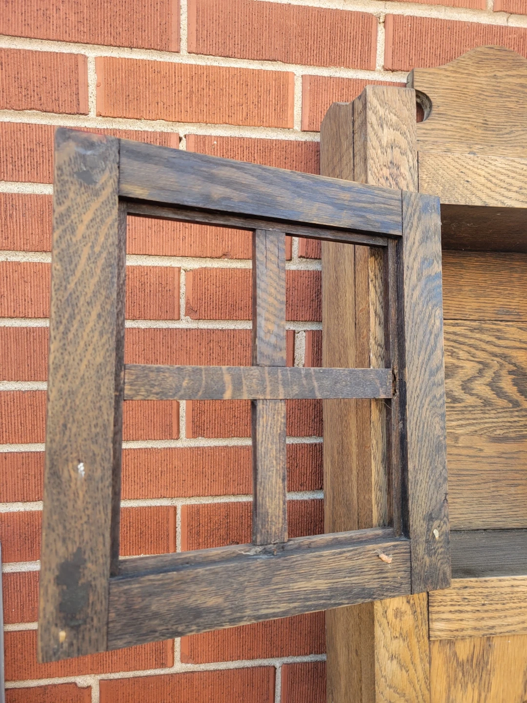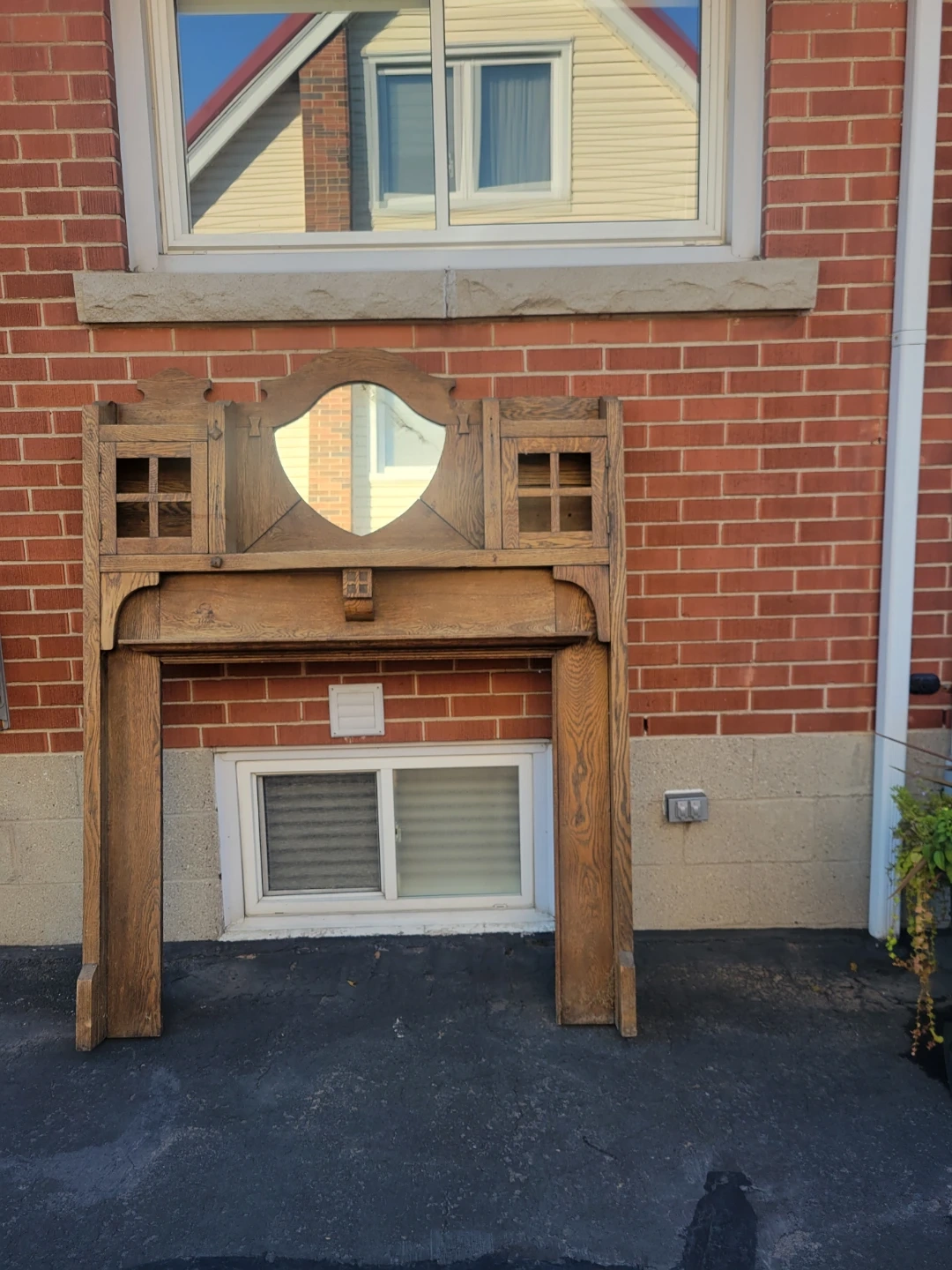 103This solid oak fireplace mantel boasts a charming antique design, perfect for adding character to any room. Being a used item, it carries a story with some wear and tear, visible in the photos, which only adds to its vintage appeal. Add some stained glass or mirrors to the side cupboards. There is a plate rack built in. The mirror has character or can be easily replaced Very heavy as it's solid Oak 57"w x 73"t Inside 41-1/2"w x 38"t 6"deep Fennell and Upper gage Hamilton Please click on my many ads for sale A few Wood pieces are missing but can be removed or changed. I was going to refurbish and have gone another direction. $175 Firm