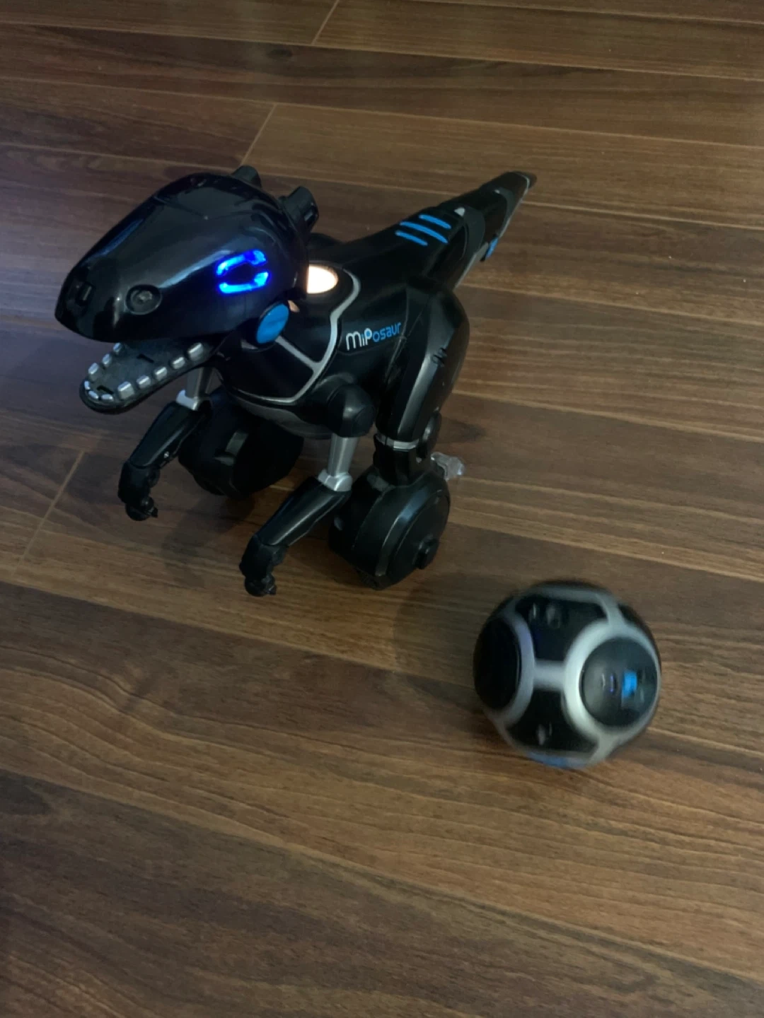 144Selling a WowWee MiPosaur robot dinosaur! It's in great condition and comes with its original TrackBall. This interactive robot is a lot of fun for kids and adults alike. The MiPosaur balances on two wheels and responds to gestures and the TrackBall. Hours of fun!