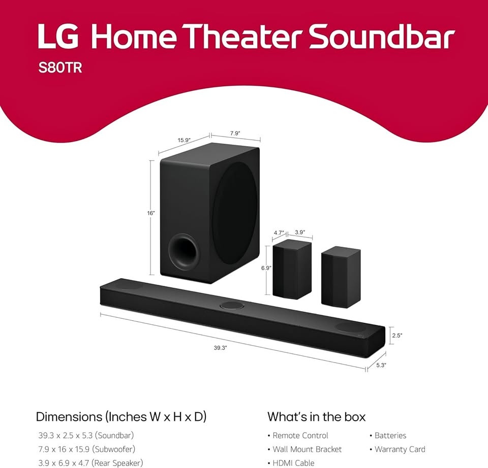 LG S80TR 5.1.3 Channel Sound Bar w/ Wireless Subwoofer & Rear Sp