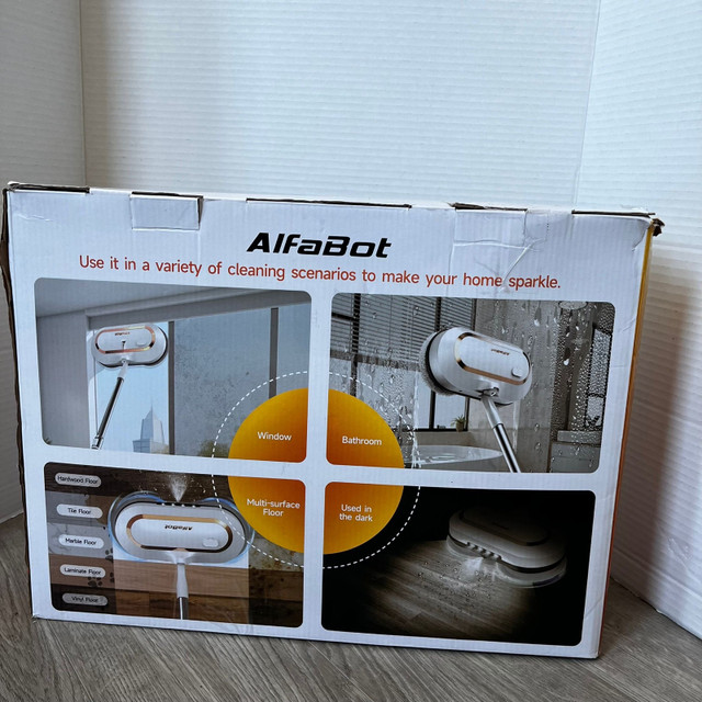 I'm selling a brand new AlfaBot S2 Cordless Electric Mop, designed to make floor cleaning a breeze with its double spin head and convenient water spray! The mop features an adjustable length, LED light for those hard-to-see areas, and can swing 180 degrees from left to right for maximum reach. It comes complete with different mopping pads to suit all your cleaning needs. It is still available if the ad is up.