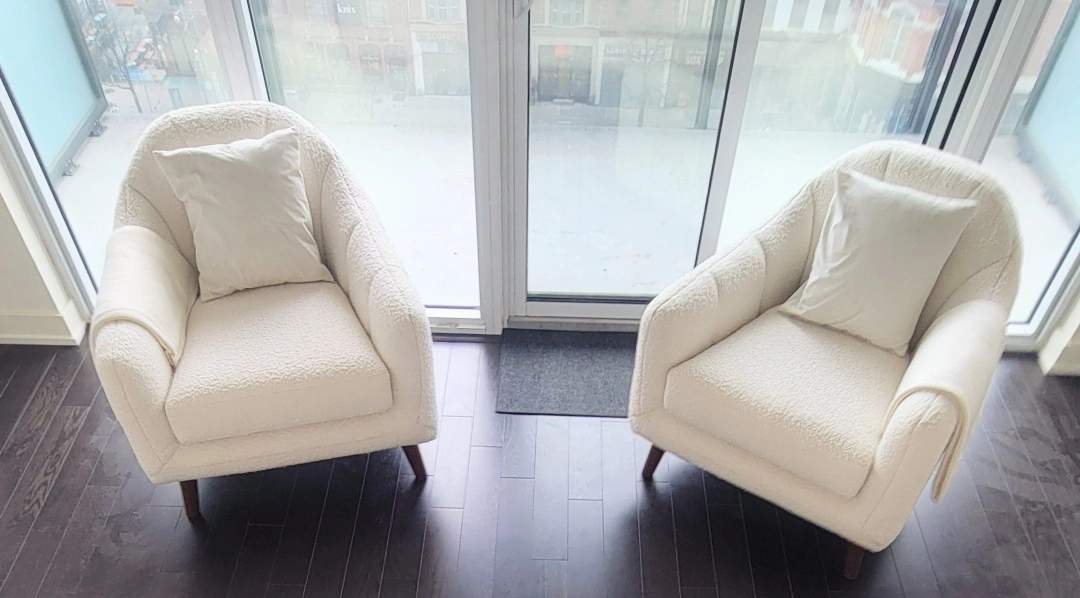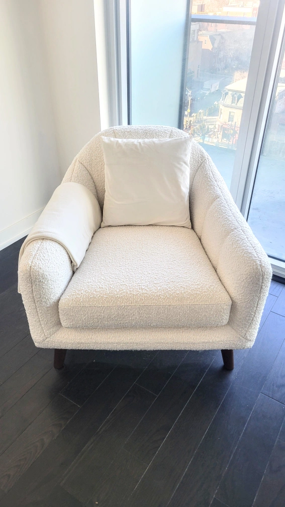 $1,800 NEW 2x White Upholstered Armchair Set