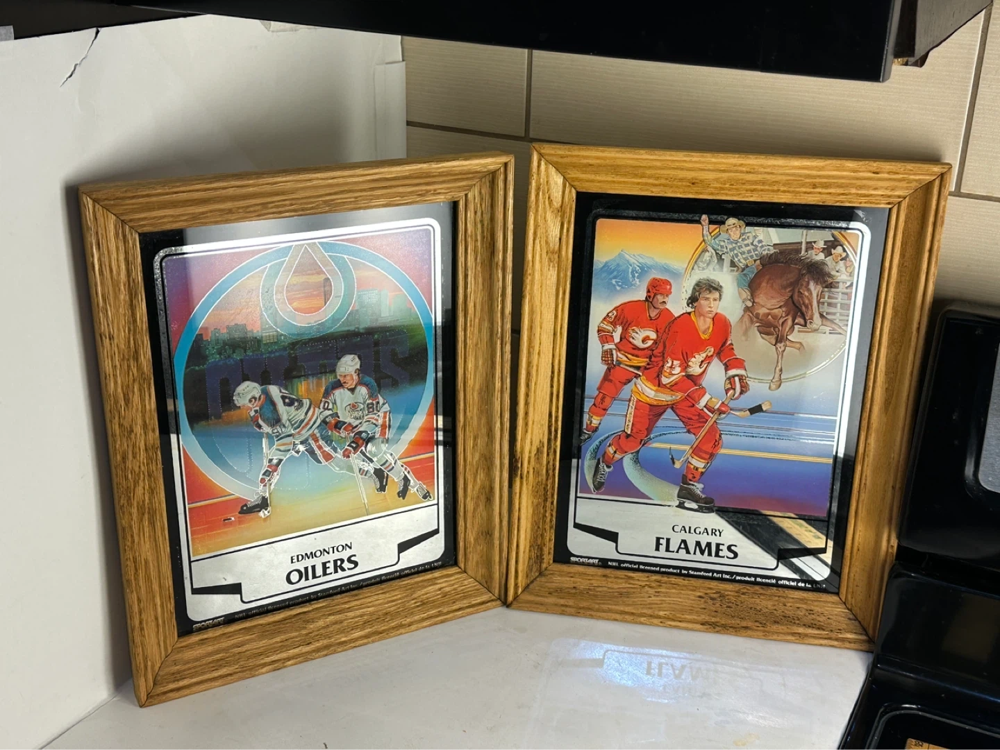 VTG Framed Edmonton Oilers & Calgary Flames NHL Art
