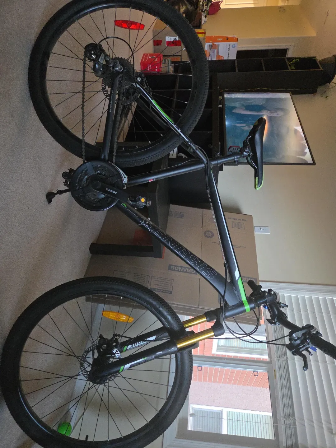 Buy & SellGenesis Mountain BikeGenesis Mountain Bike$240This is a black Genesis mountain bike. It features a sturdy frame and front suspension forks with a gold finish. The handlebars have green accents.ConditionLike newWHERE TO MEETriverdaleView MapSELLERverifiedcharleeRiverdale600 reviews2 chats·3 favorites·31 viewsSEND CHAT TO SELLERHi charlee! I’m interested in your listing.Hi charlee! I’m interested in your listing.Get the Karrot app to chatSign In to chat
