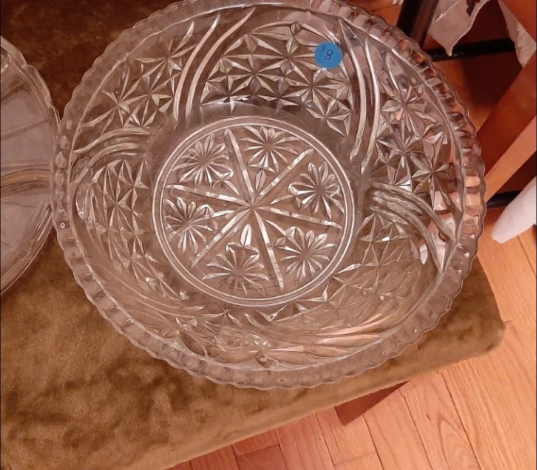 Buy & SellVintage 10" Crystal like Serving Bowl.Vintage 10" Crystal like Serving Bowl.$8Vintage 10" Crystal like Serving Bowl. Great for Entertaining. others selling for much more.WHERE TO MEETCheck LocationView MapSELLERChrisJefferson Park746 reviews0 chats·0 favorites·2 viewsSEND CHAT TO SELLERHi Chris! I’m interested in your listing.Hi Chris! I’m interested in your listing.Get the Karrot app to chatSign In to chat