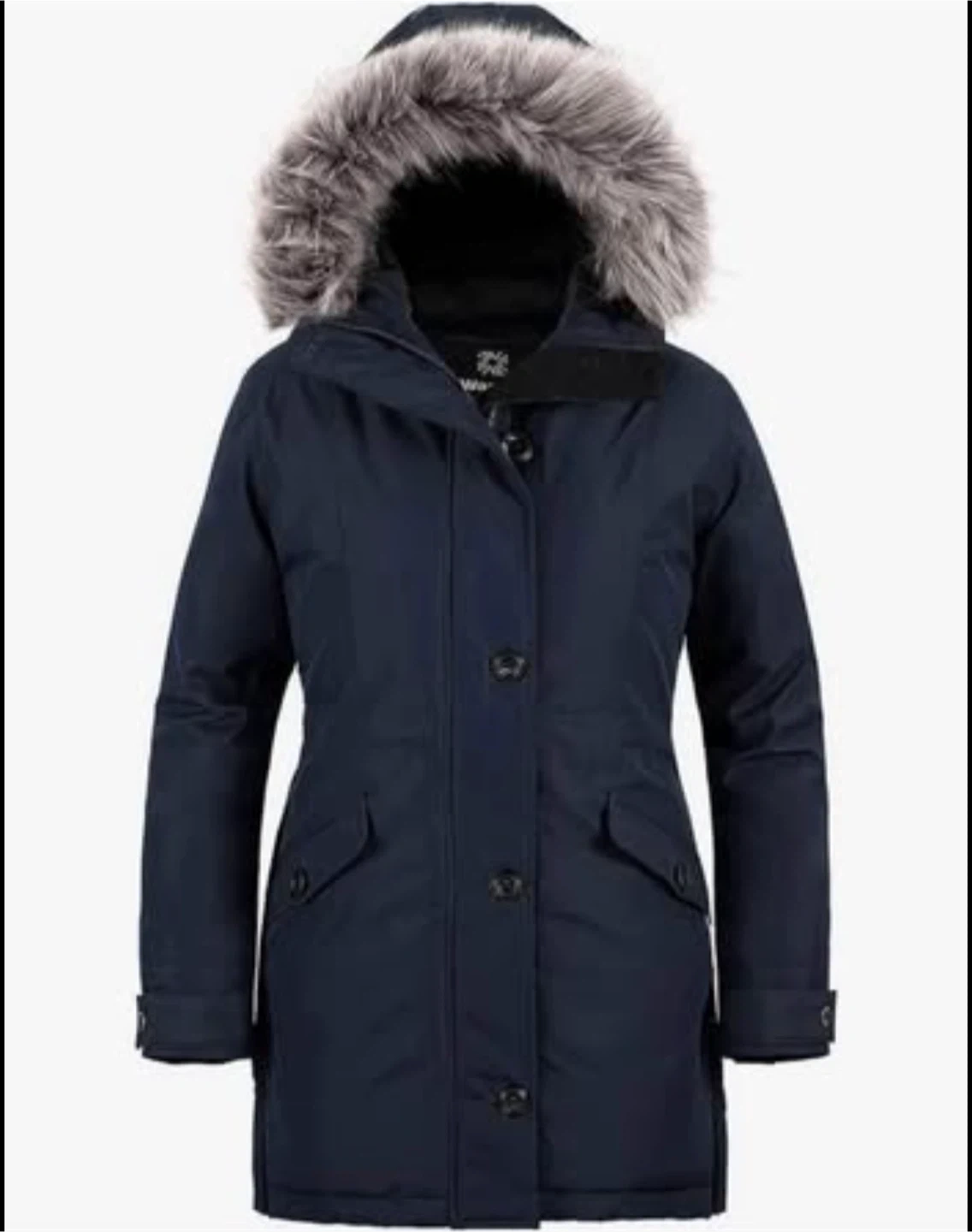 Navy Blue Parka Jacket with Faux Fur Hood
