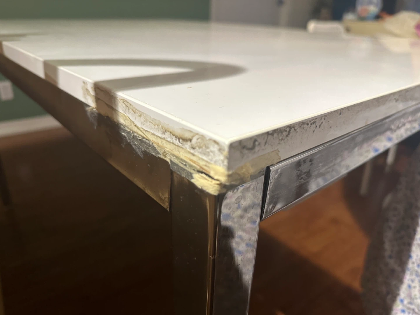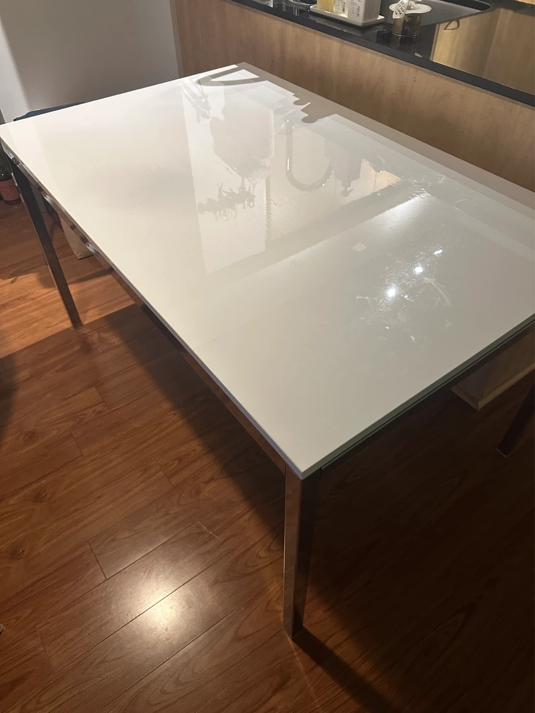 High Gloss white surface table with METAL frames. very sturdy. Discontinued. Originally 249+tax