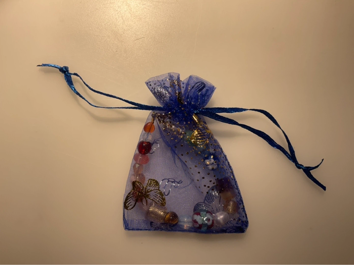 A colourful beaded bracelet. It's made with a variety of real jewel ๐ and stone beads. Comes with a sheer blue drawstring pouch for storage. It took 20dollars and I never used before!