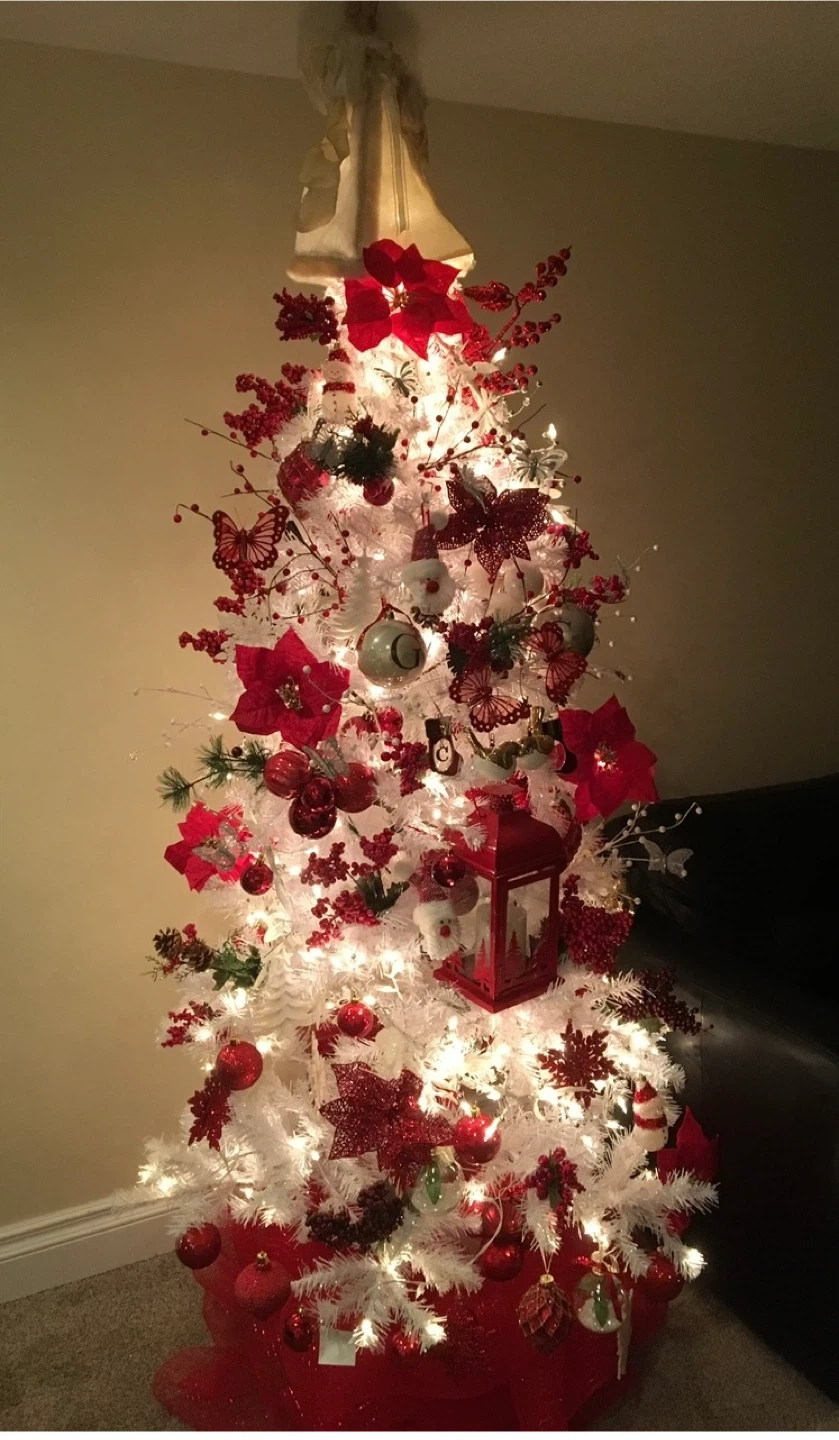 Second photo is the outcome after decorating it - Christmas ornaments not included.