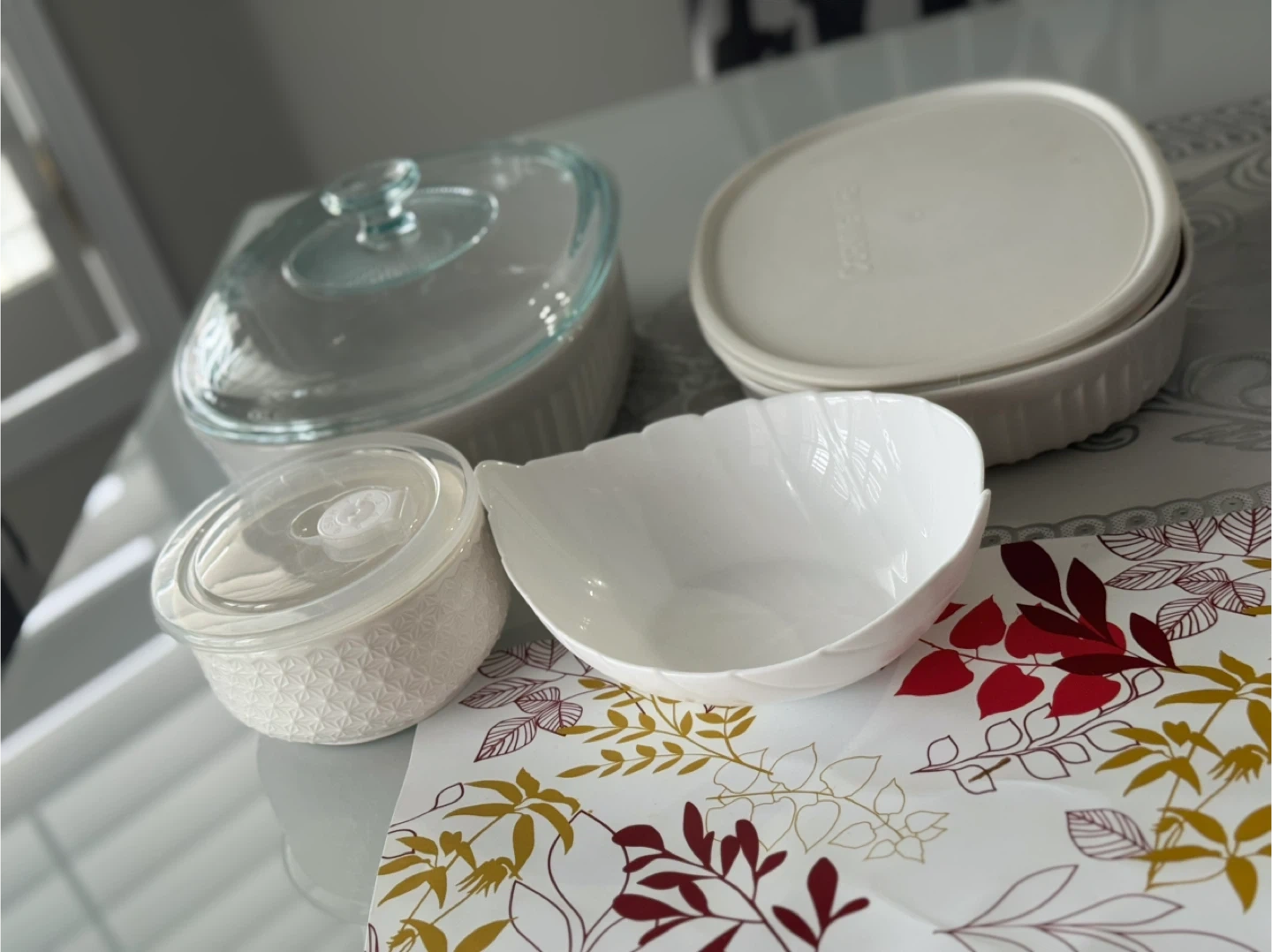 Selling a set of dishes including Pyrex and CorningWare pieces. They're in great shape and ready for a new home! Perfect for baking and serving your favourite meals and impressing friends and family with these beautiful pieces. They add an extra touch of beauty and elegance to any home.