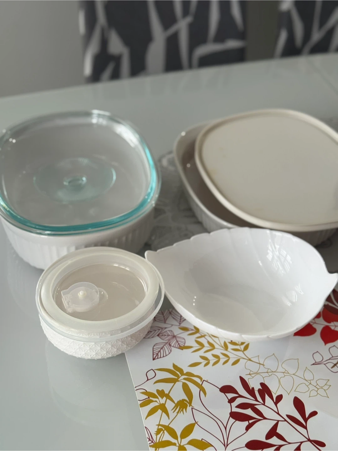 Selling a set of dishes including Pyrex and CorningWare pieces. They're in great shape and ready for a new home! Perfect for baking and serving your favourite meals and impressing friends and family with these beautiful pieces. They add an extra touch of beauty and elegance to any home.