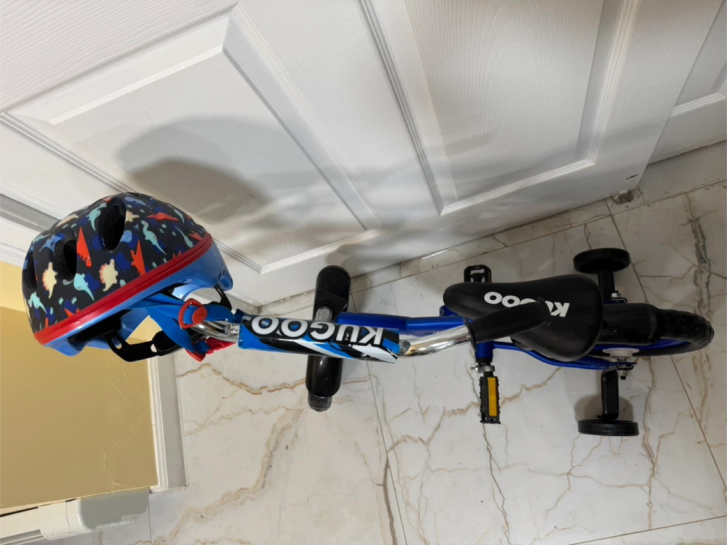 KUGOO Blue Balance Bike with Training Wheels and Helmet