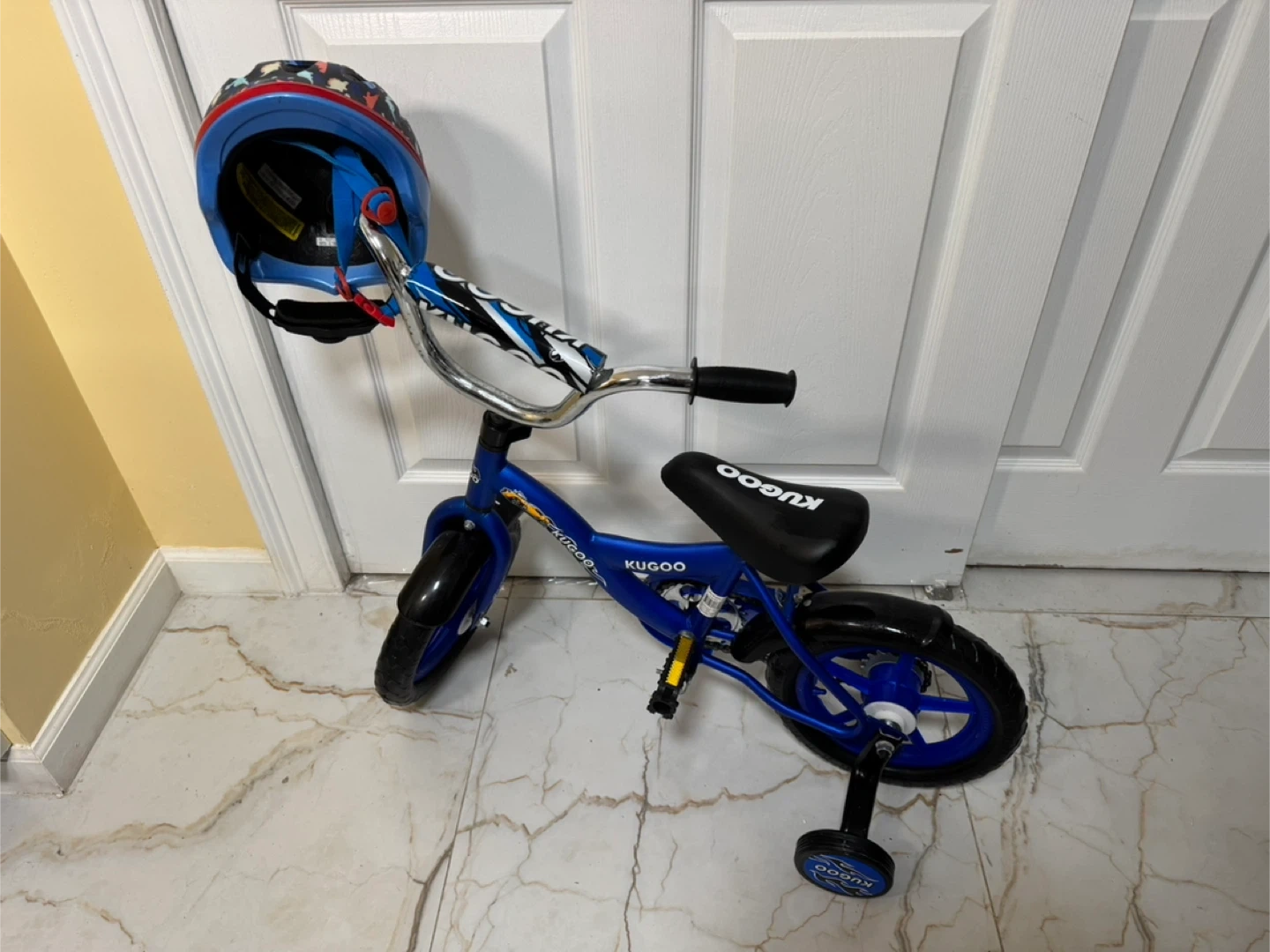 KUGOO Blue Balance Bike with Training Wheels and Helmet