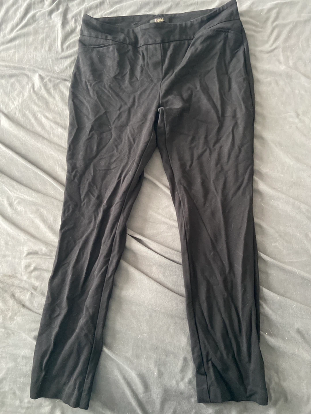 These black Dalia pants are a versatile addition to any wardrobe. They're made from a comfortable, stretchy material. These pants are great for both casual outings and dressing up for work!
