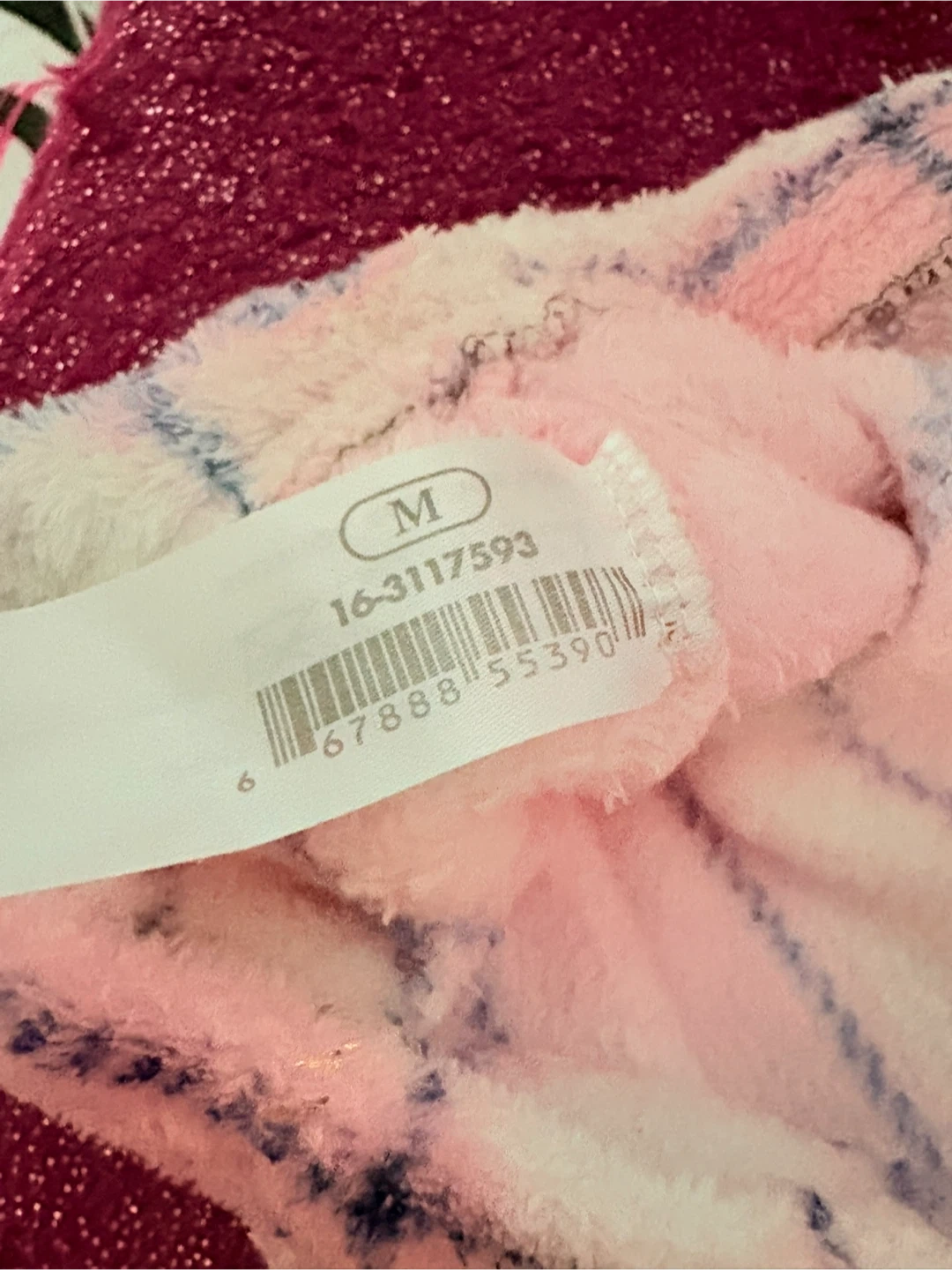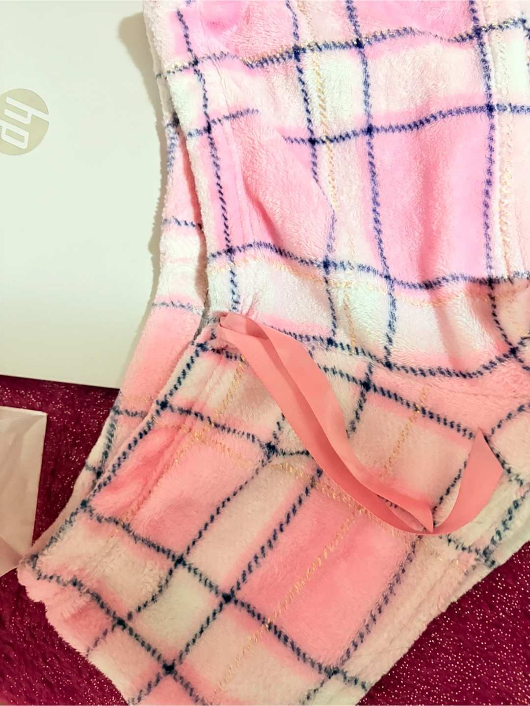 Comfy pink and blue plaid lounge shorts. Soft, fluffy material perfect for relaxing. Features a pink drawstring. Size medium.
