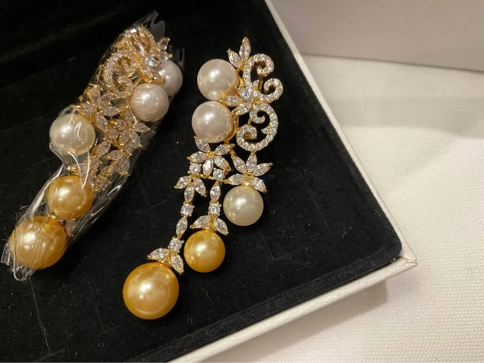 Ladies Earrings BRAND NEW VOISSON Champagne Gala Pearl