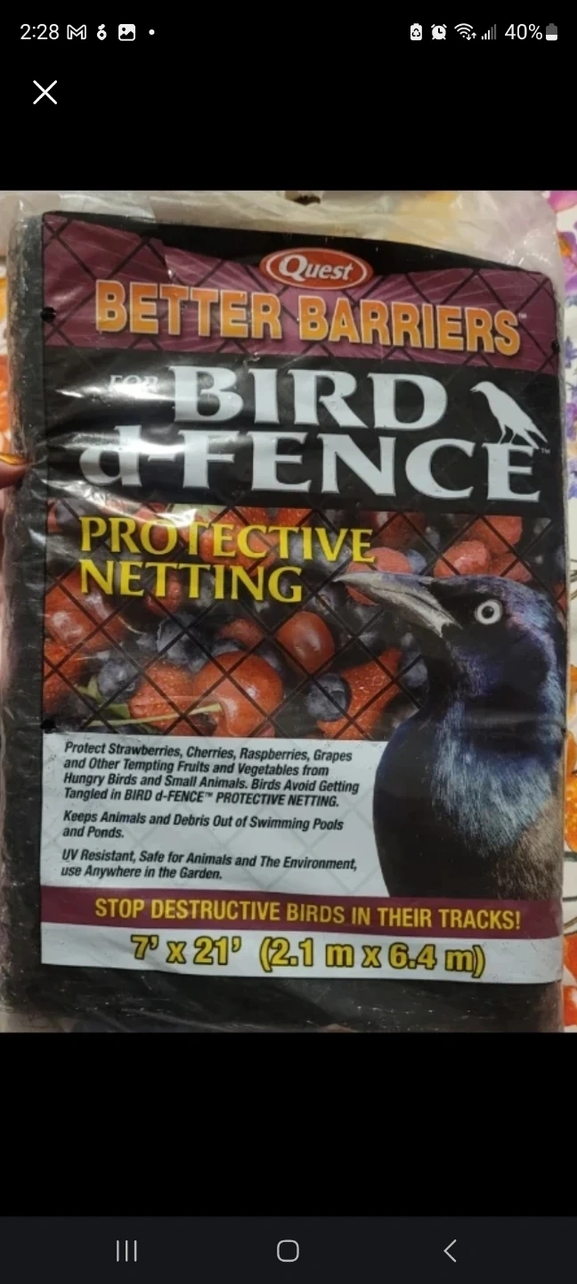 Quest Better Barriers Bird Fence Protective Netting. It protects fruits and vegetables from birds and small animals. This UV resistant netting keeps animals and debris out of swimming pools and ponds. It's safe for animals and the environment.