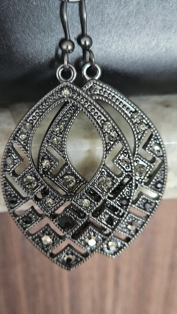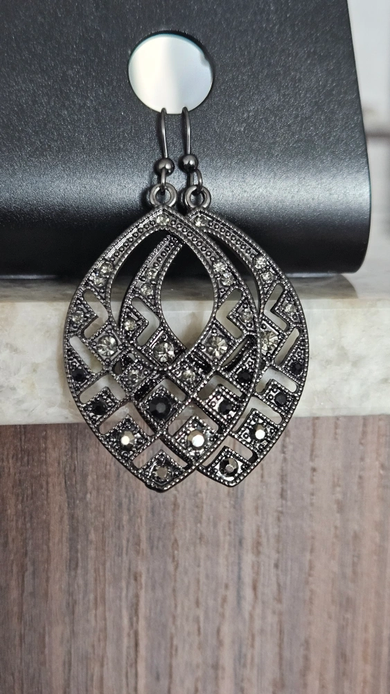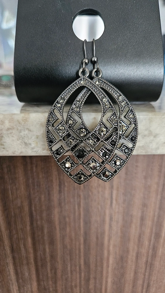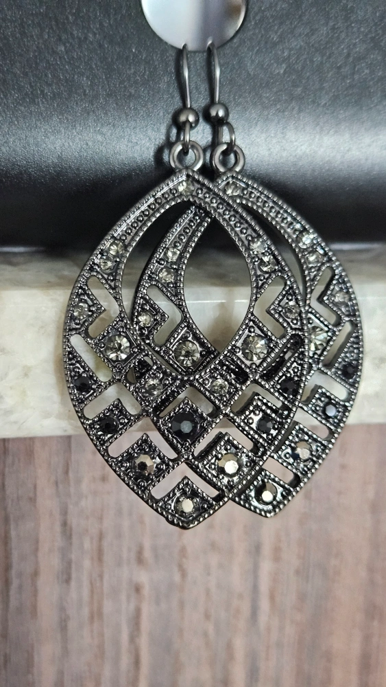 Stunning Black and silver tone earrings with rhinestones. Very dressy, but can also be dressed down for a casual look.