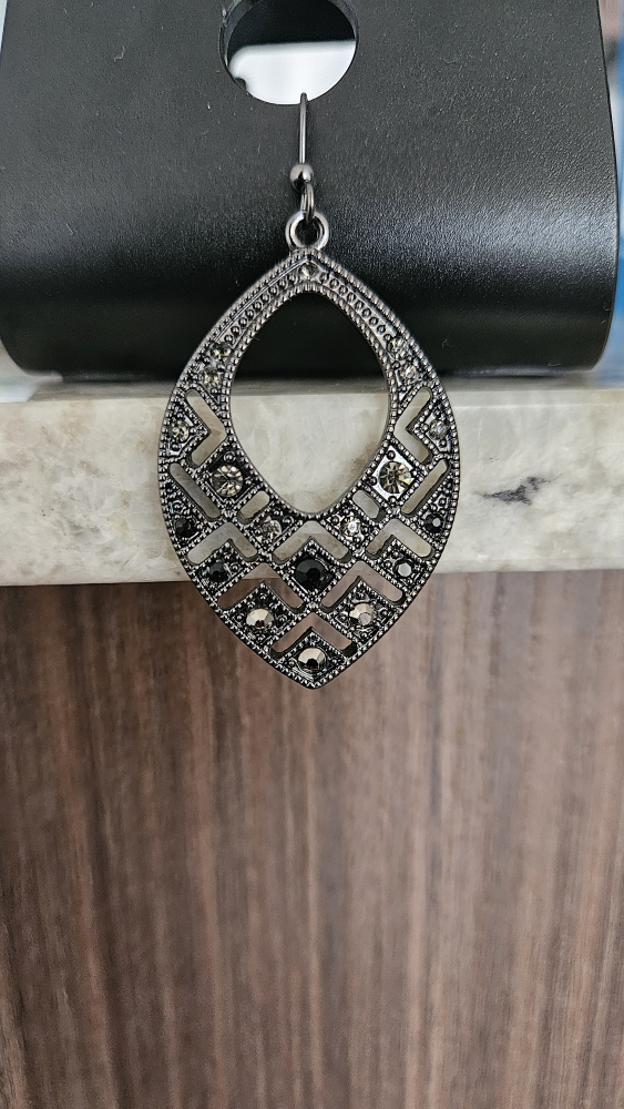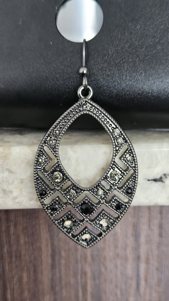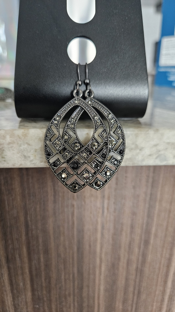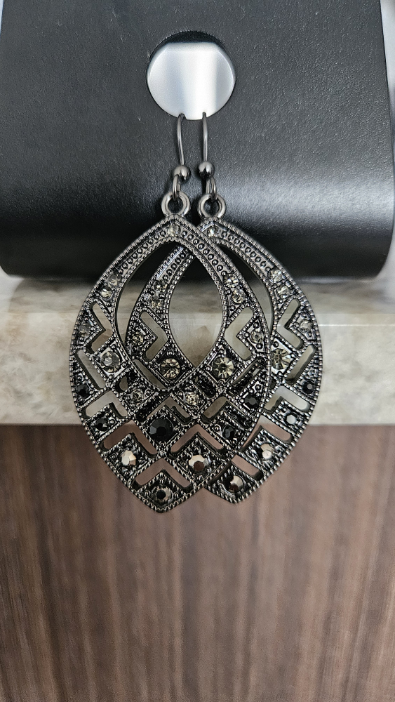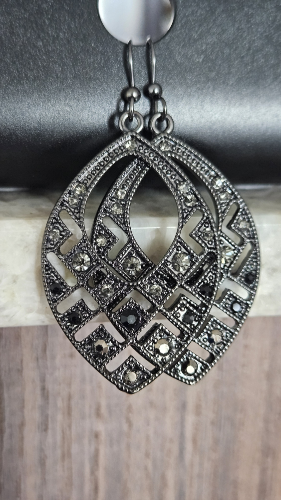 Stunning Black and silver tone earrings with rhinestones. Very dressy, but can also be dressed down for a casual look.