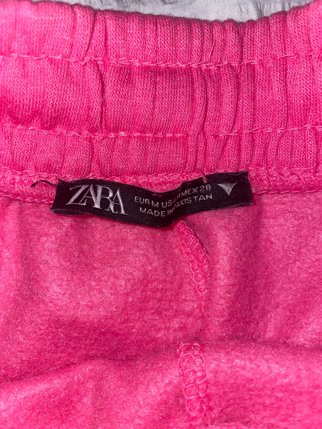 These vibrant pink sweatpants from ZARA are a size medium. They're made from a soft fleece material with an elastic waistband and drawstring for a comfortable fit. Perfect for lounging at home or casual outings!