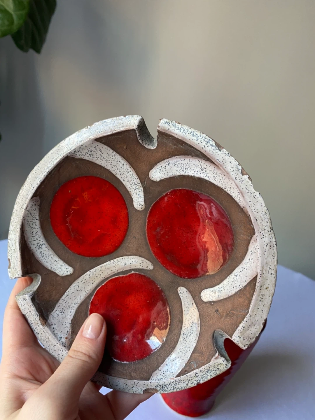 -Abstract Low Bowl/Ashtray: A unique modernist piece showcasing geometric circular motifs.