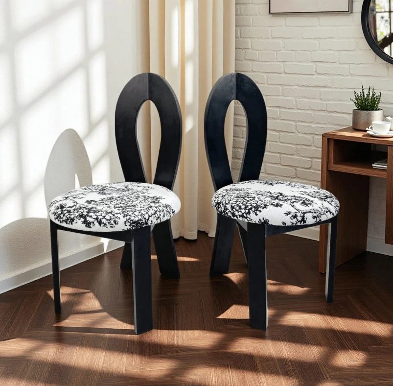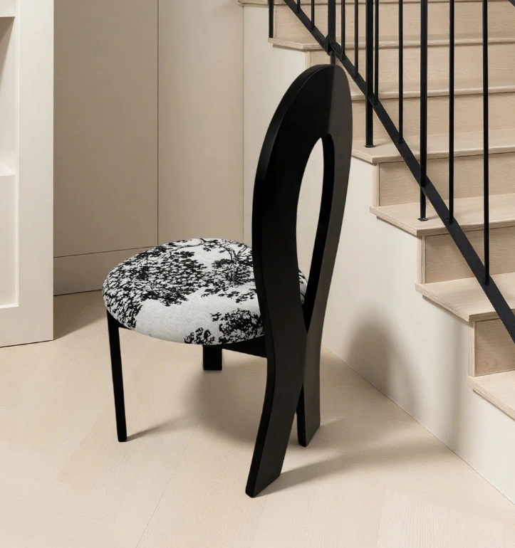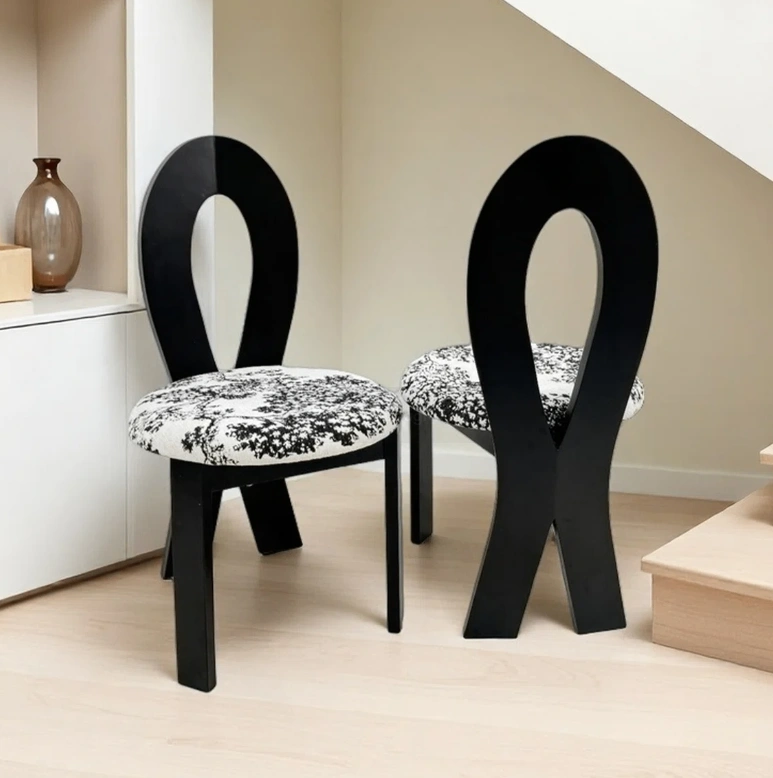Selling a stylish accent dining chair featuring a unique black frame and a patterned seat! The chair's dimensions are approximately 36.2 inches in height, with a seat diameter of about 21.2 inches. It would make a great addition to any room!