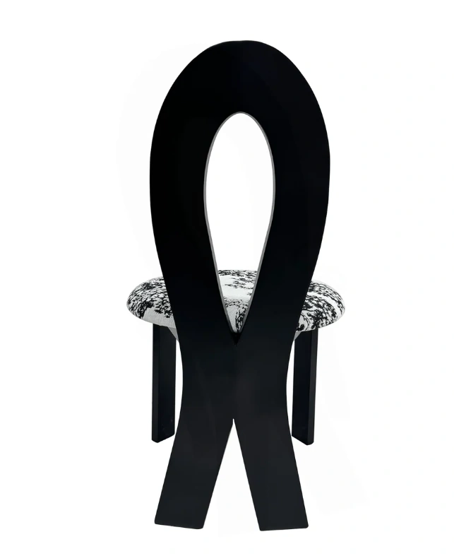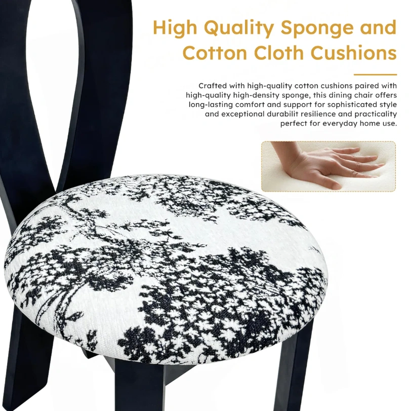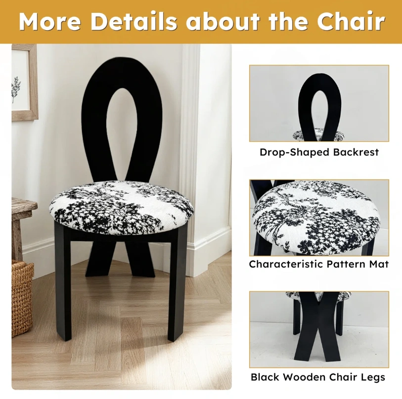 Selling a stylish accent dining chair featuring a unique black frame and a patterned seat! The chair's dimensions are approximately 36.2 inches in height, with a seat diameter of about 21.2 inches. It would make a great addition to any room!