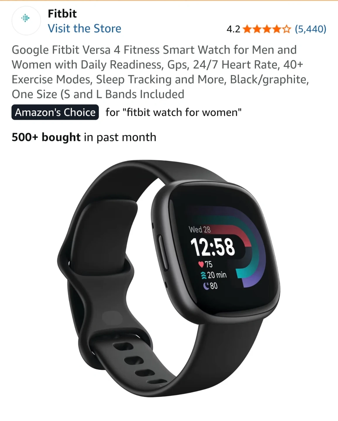 Fitbit Versa 4 Fitness Smartwatch Black/Graphite