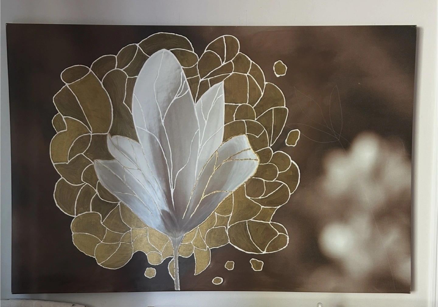 Floral Wall Art with golden lines.