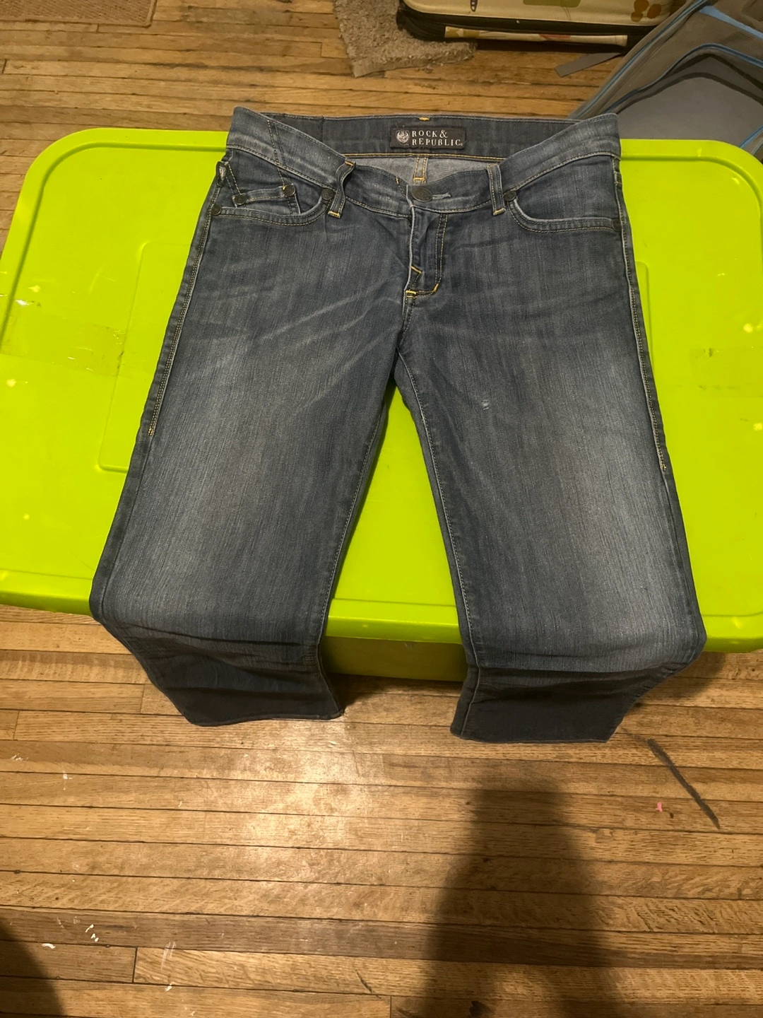 Buy & SellRock & Republic Jeans FlareRock & Republic Jeans Flare$50Selling a pair of Rock & Republic jeans! They're in good condition and have a stylish design on the back pockets and buttonSize25BrandRock & RepublicWHERE TO MEETCheck LocationView MapSELLERverifiedNoaThe Beaches17715 reviews0 chats·0 favorites·22 viewsSEND CHAT TO SELLERHi Noa! I’m interested in your listing.Hi Noa! I’m interested in your listing.Get the Karrot app to chatSign In to chat