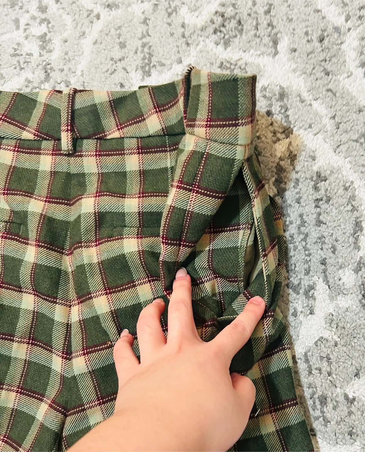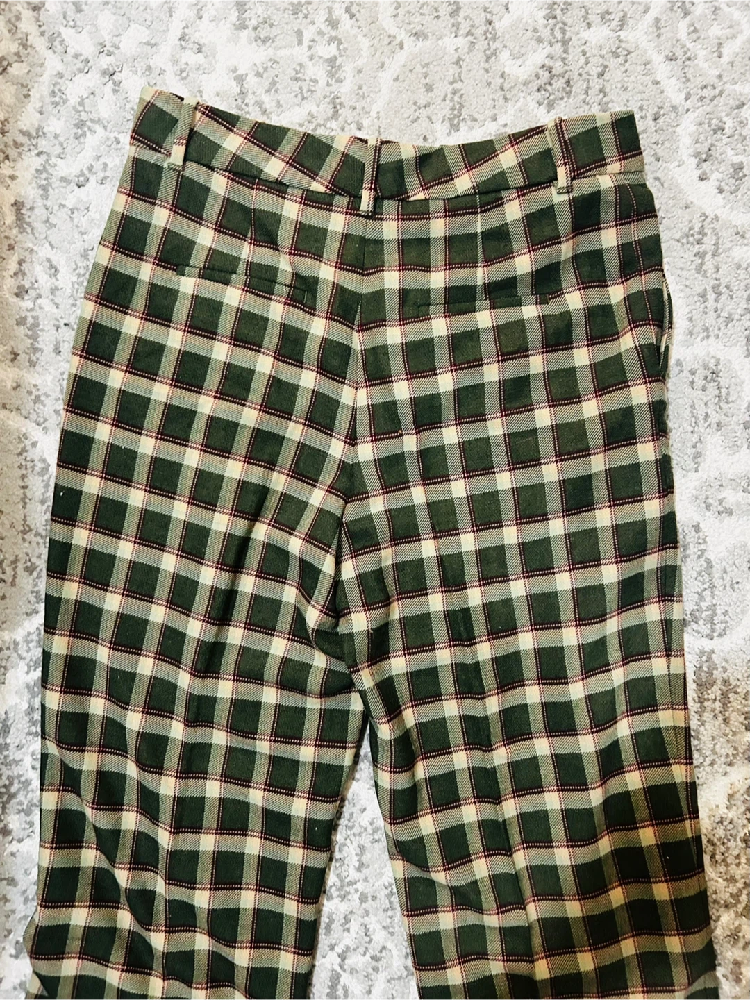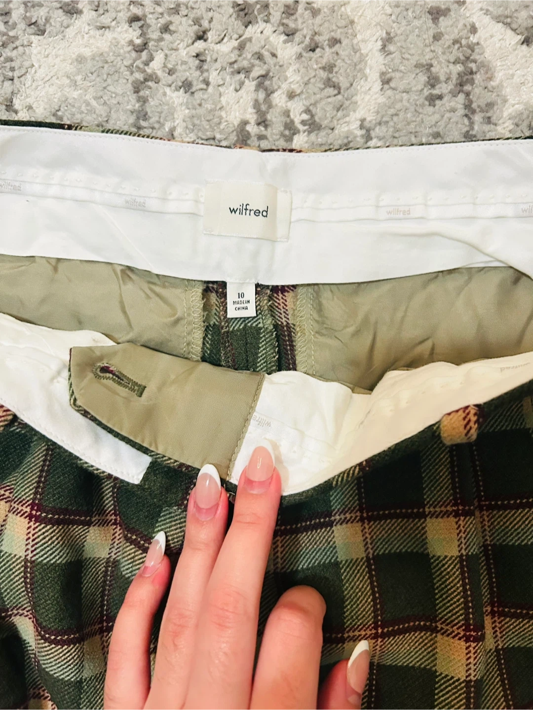 Selling a pair of Wilfred plaid trousers in size 10. They are in great condition and feature a stylish green and beige plaid pattern. Perfect for adding a touch of sophistication to your wardrobe!