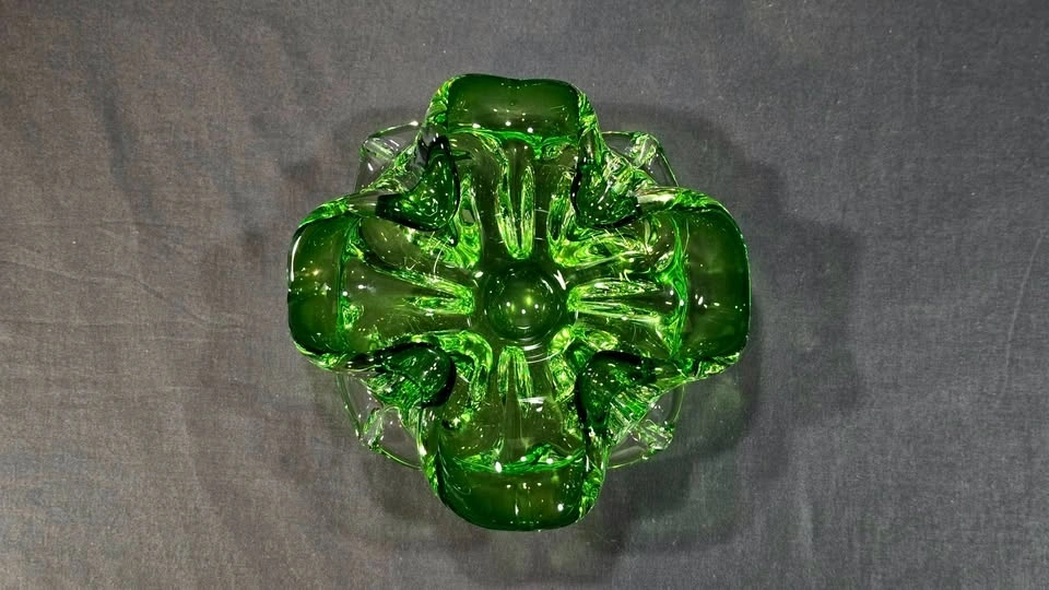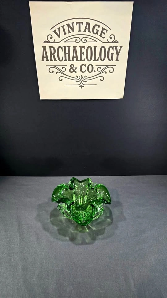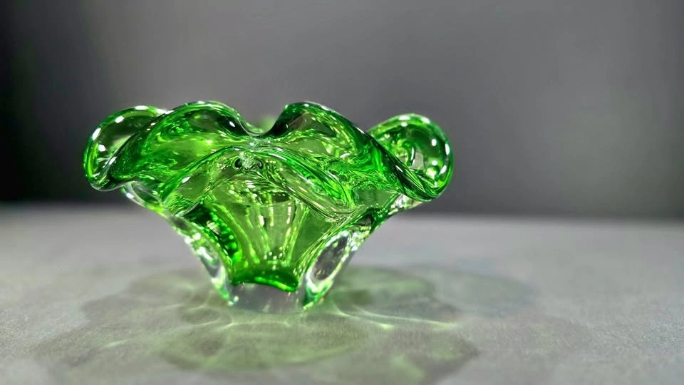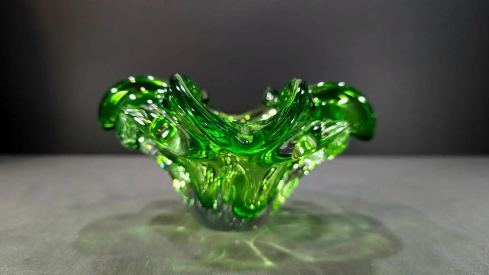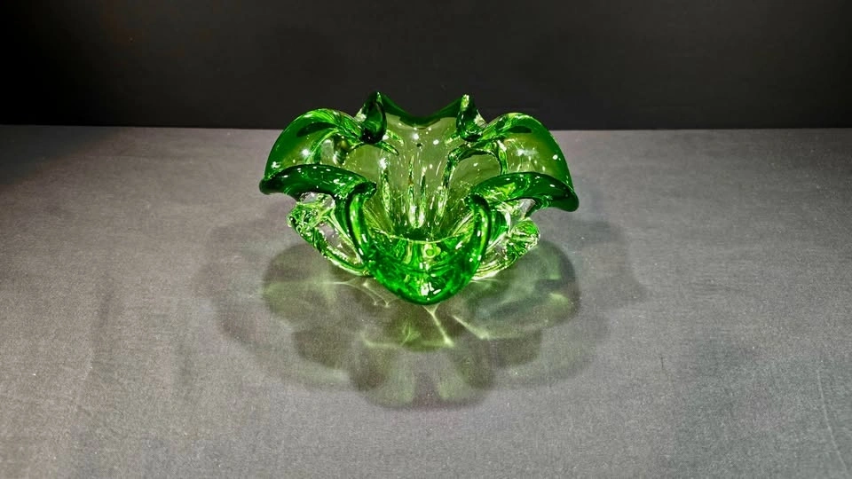 Green Controlled Bubble Glass Bowl - Murano Style