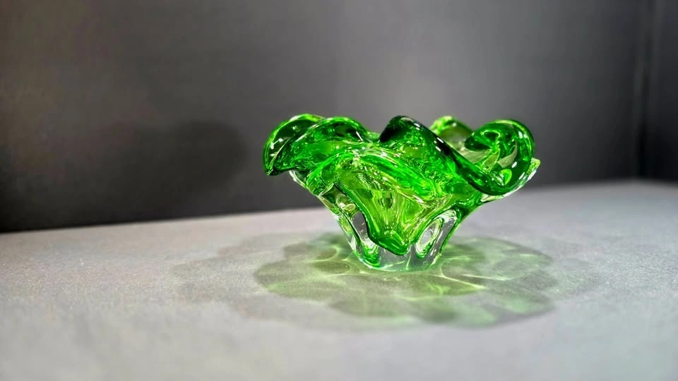 A stunning and eye-catching green bubble glass bowl that will be the centre of attention.