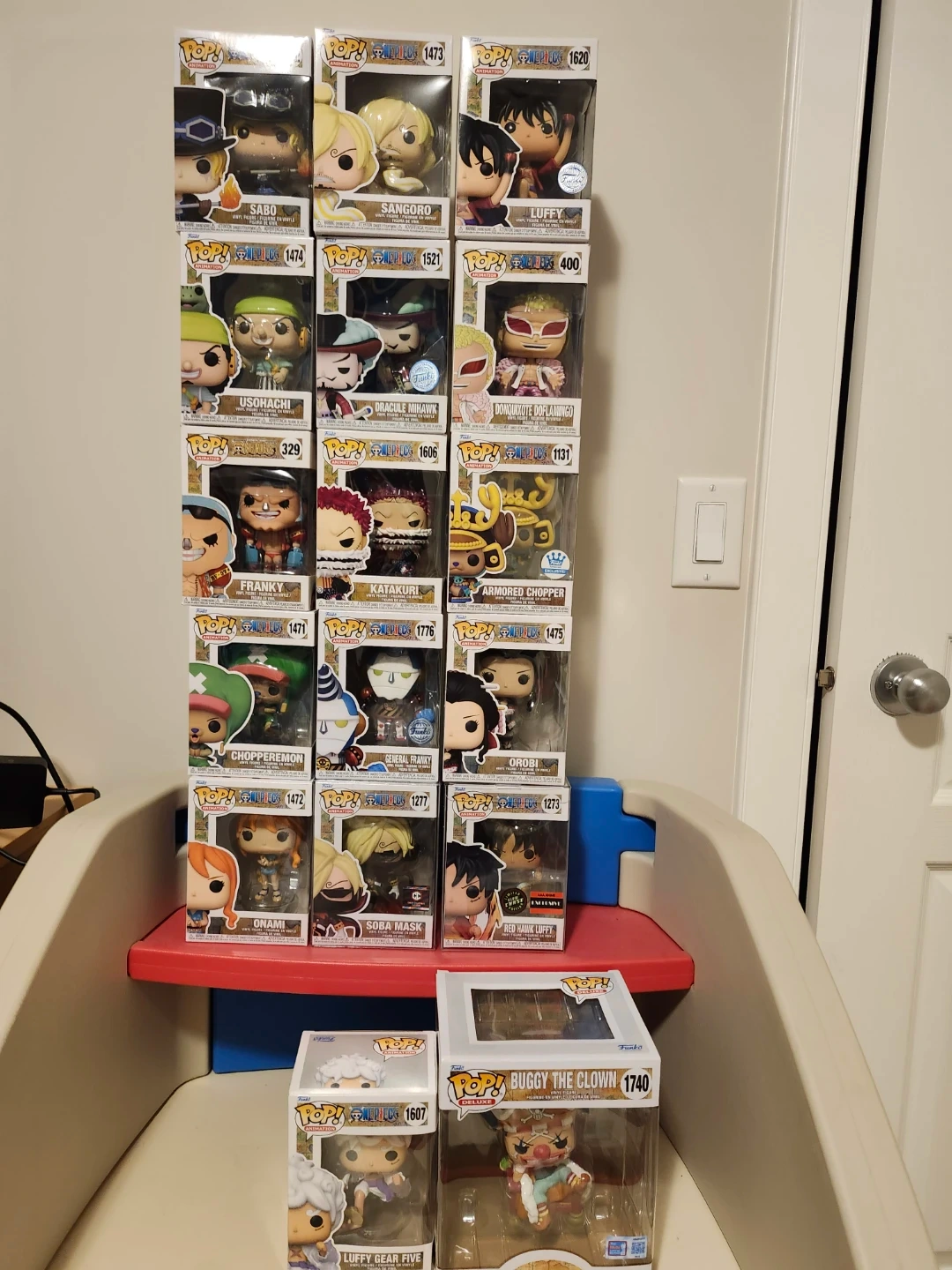 Selling my One Piece Funko Pop collection! All figures are in boxes and in great condition. Characters include Sabo, Sangoro, Luffy, Usohachi, Dracule Mihawk, Donquixote Doflamingo, Franky, Katakuri, Armored Chopper, Chopperemon, General Franky, Orobi, Onami, Soba Mask, Red Hawk Luffy, Buggy the Clown, and Luffy Gear Five