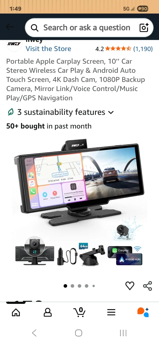 Portable 10" HD IPS ultra wide screen for Apple CarPlay and Android Auto. Includes 1080P backup camera and 64GB storage.,can add up to 250GB sd card This unit supports mirror link and voice control for music playback and GPS navigation. It's great for upgrading your car's infotainment system!