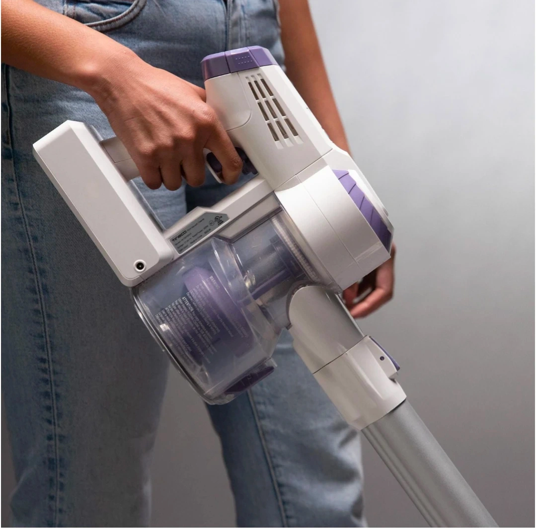 This Tineco A10-D Plus cordless stick vacuum offers up to 25 minutes of runtime. It's lightweight and easy to use. Perfect for quick cleanups around the house!