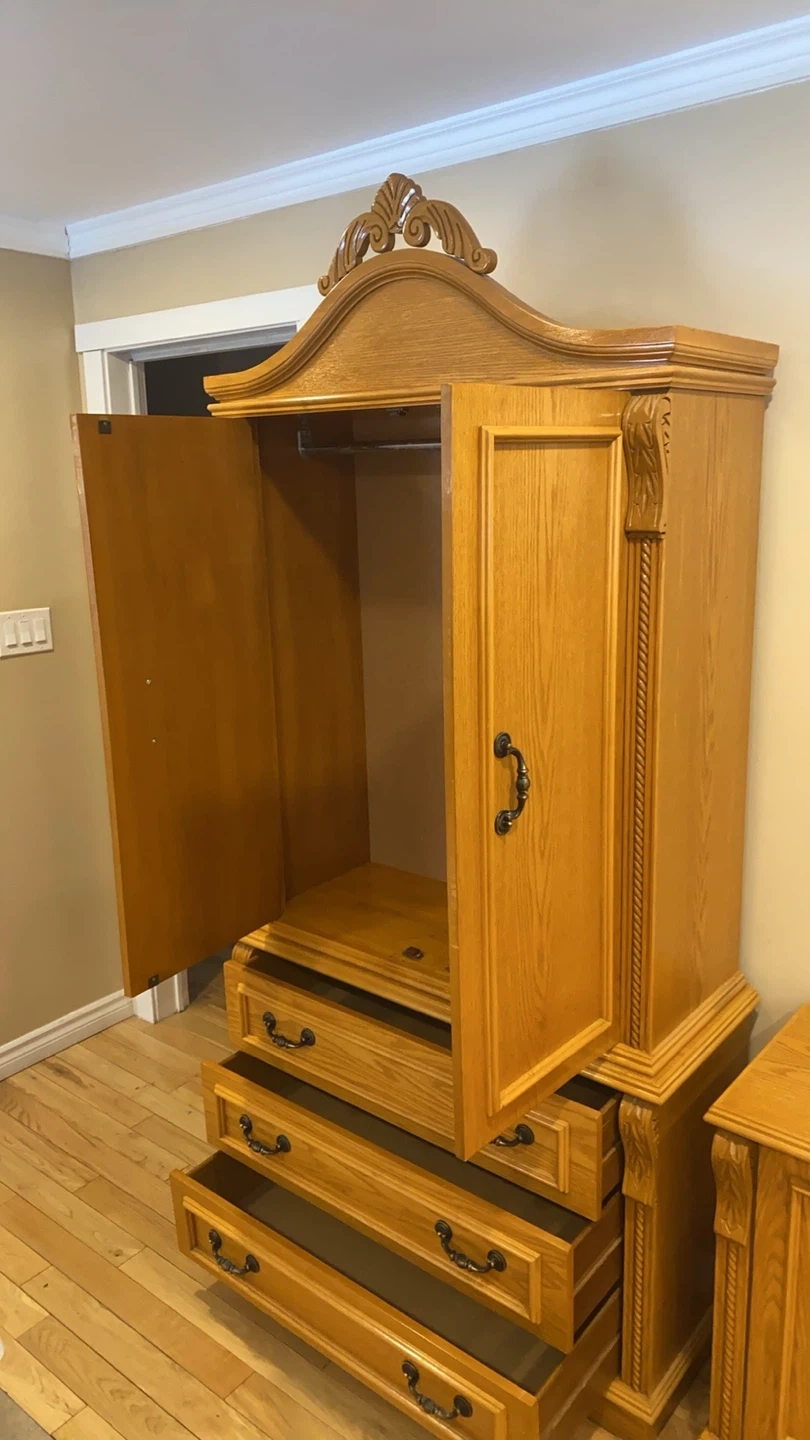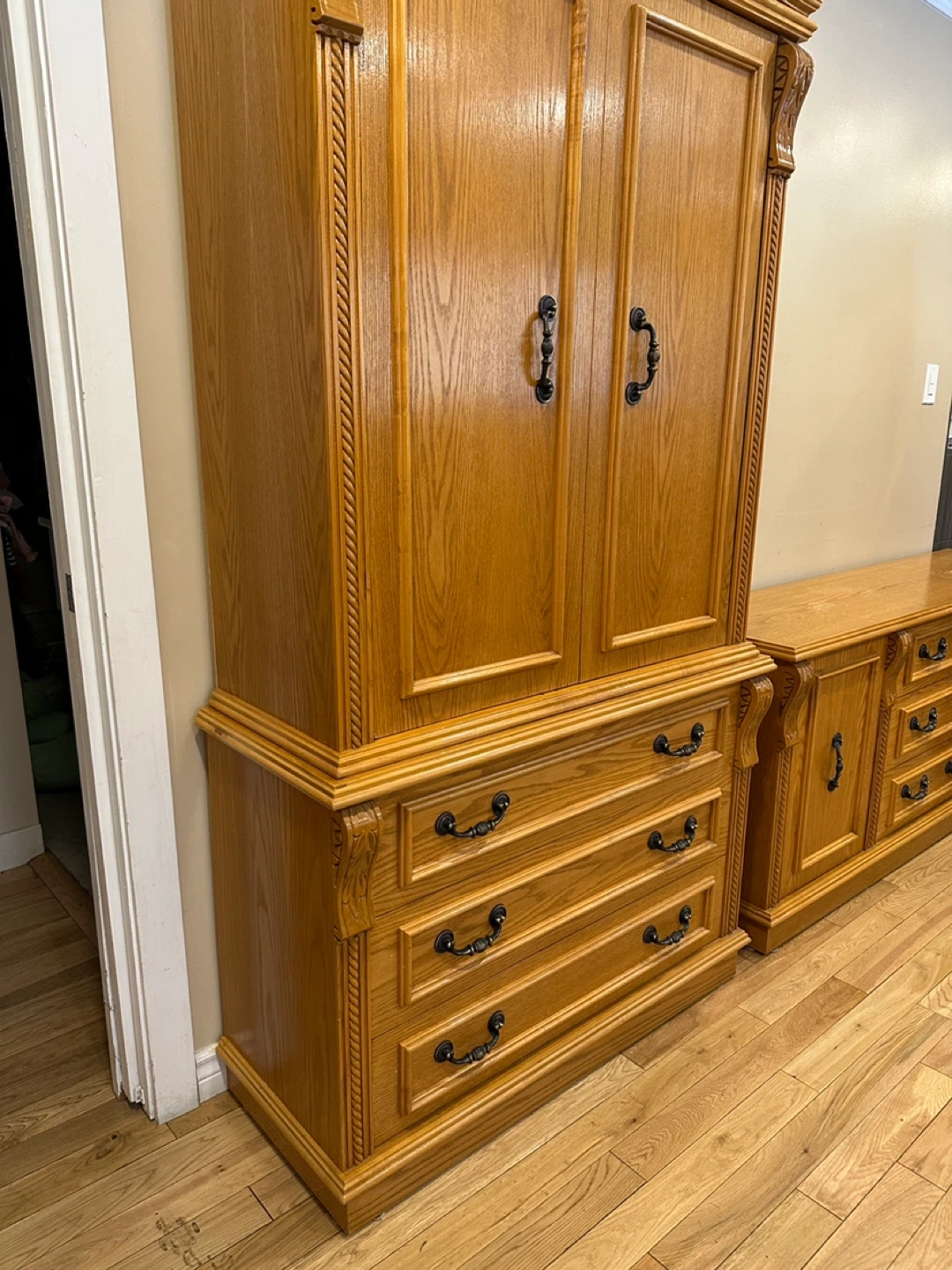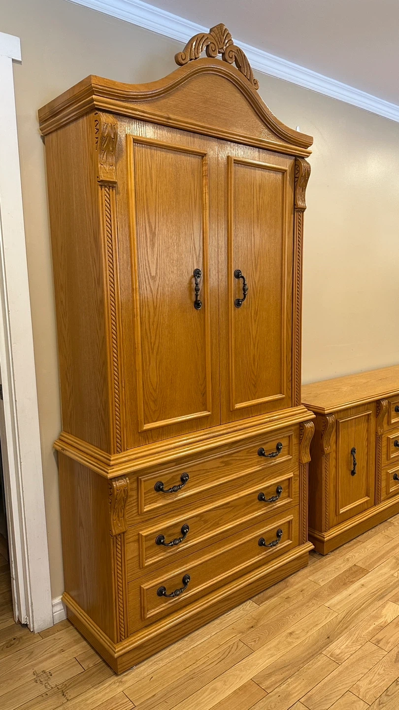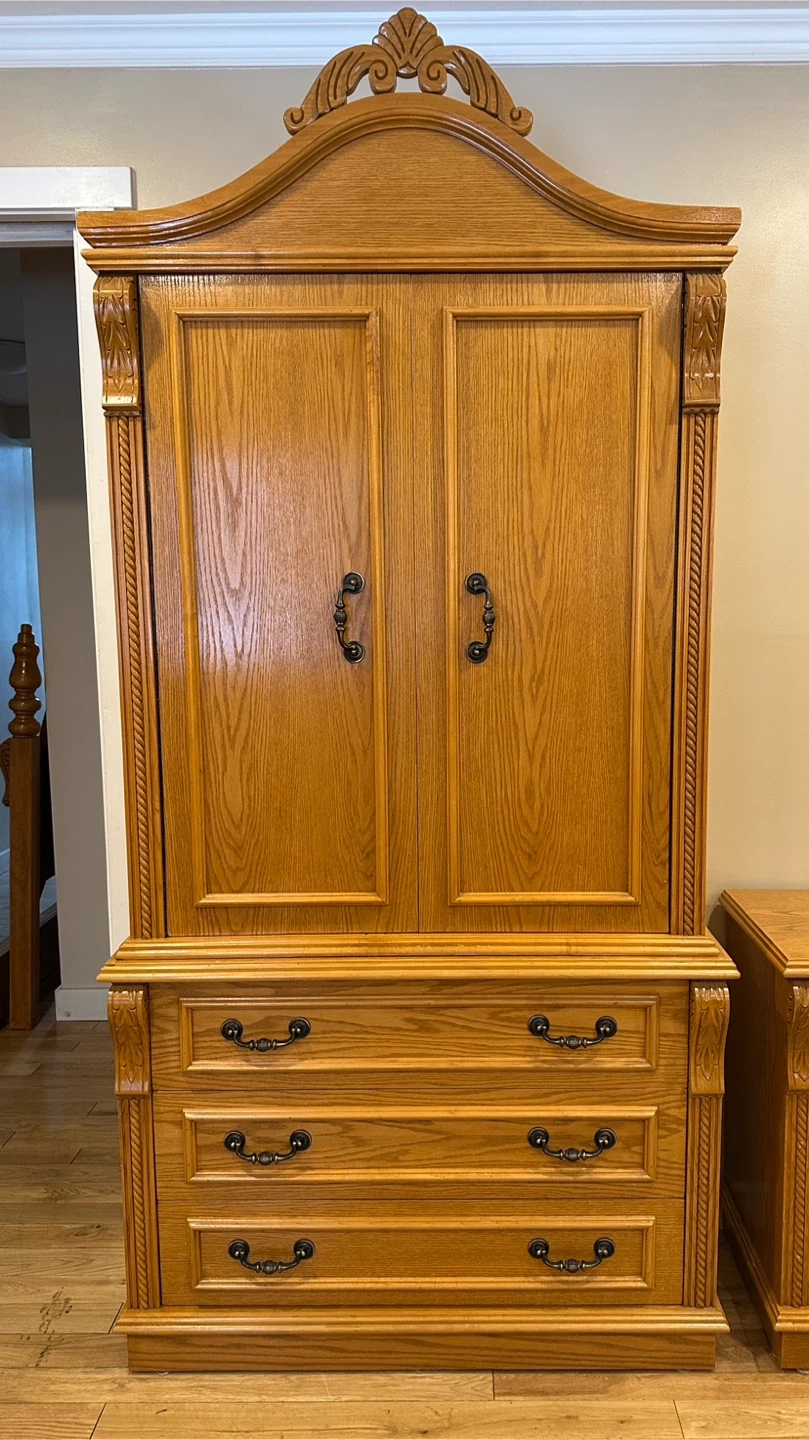 2 Piece Vintage Oak Armoire / Wardrobe (CAN DELIVER)