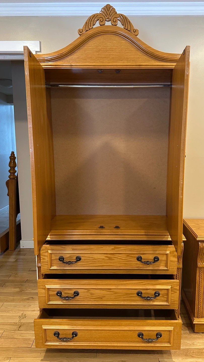 2 Piece Vintage Oak Armoire / Wardrobe (CAN DELIVER)