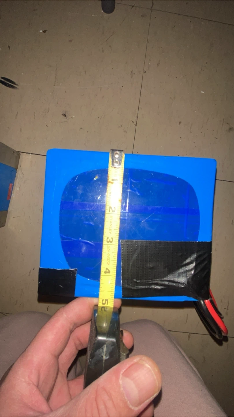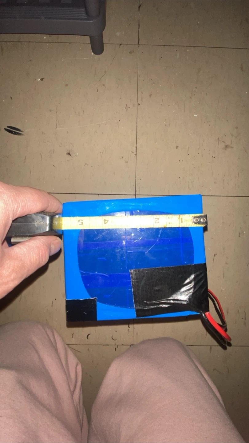 A 72-volt, 20 amp-hour Li-ion battery pack. It measures approximately 8 inches long, 4.5 inches wide, and 3 inches high. Used for powering electric devices was recently taking out of electrical dirt bike