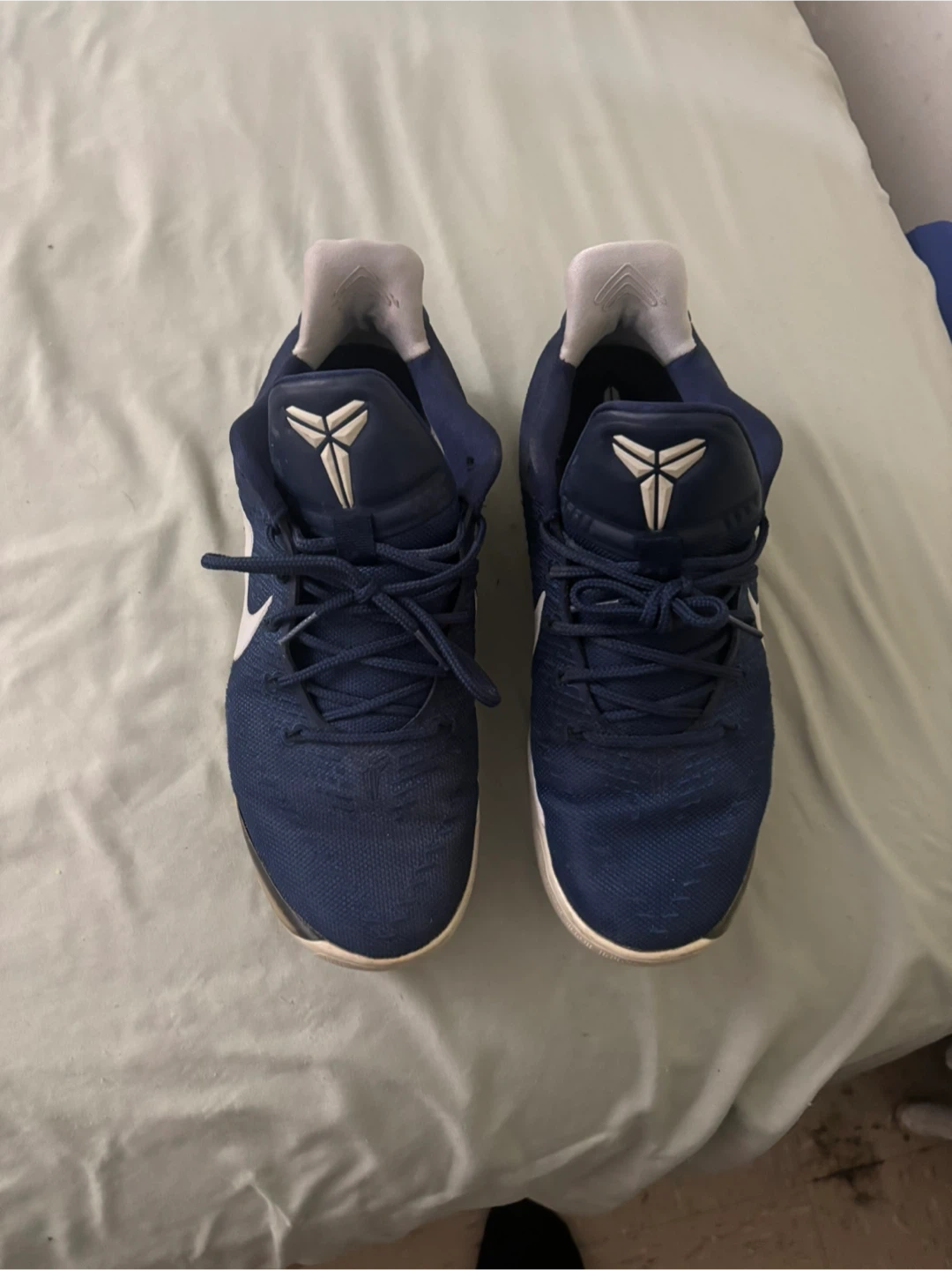 These are men's Nike Kobe Mamba Focus basketball shoes in navy blue. They feature a lace-up closure for a secure fit. These shoes are designed for performance on the court.