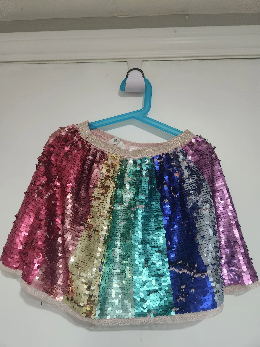 Cute skirt set from H&M for girls, featuring a sparkly rainbow sequin skirt and a pink tulle tutu skirt. All three have a comfortable elastic waistband. Perfect for parties or dress-up!