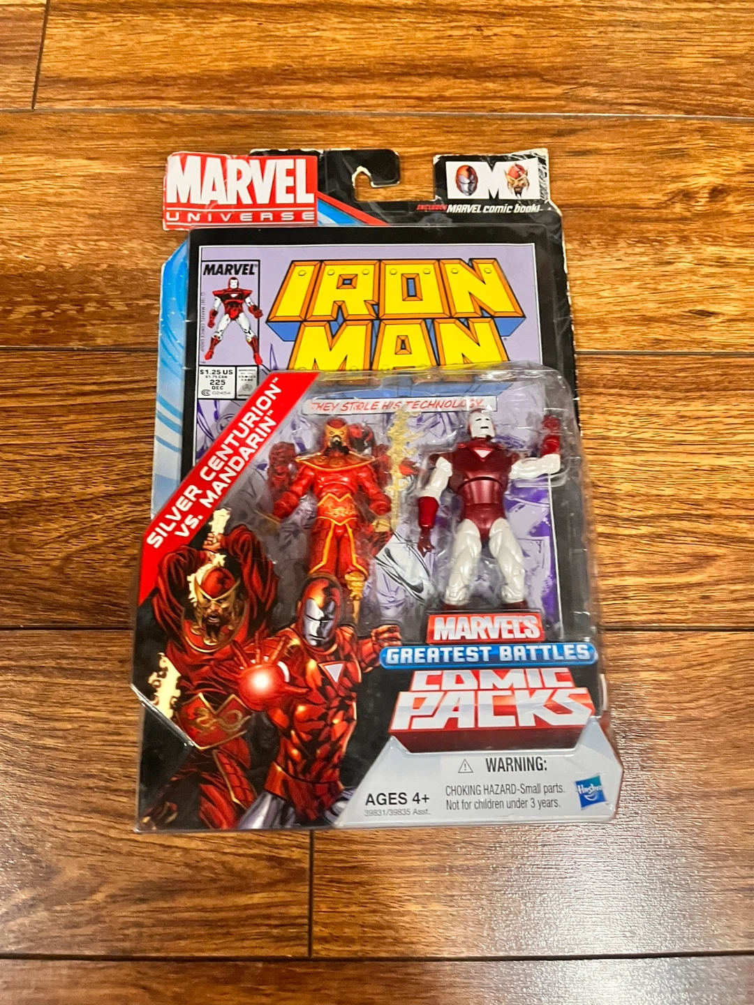 Selling a Marvel Universe Iron Man Comic Packs action figure set! This set features Iron Man and Silver Centurion vs. Mandarin. Recommended for ages 4+