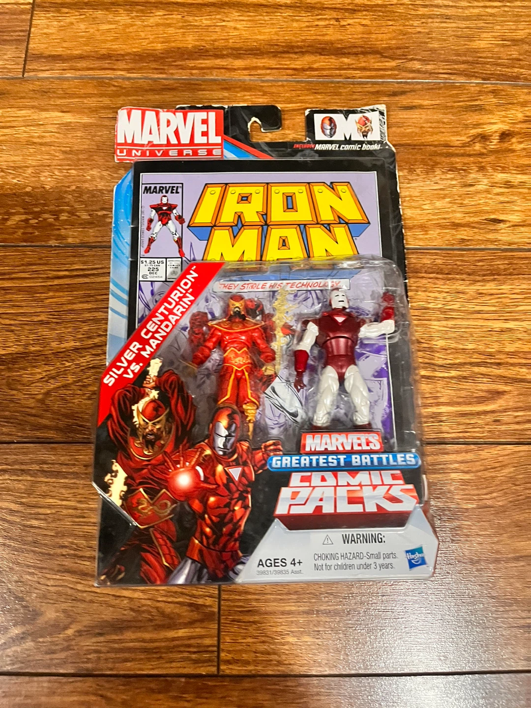 Selling a Marvel Universe Iron Man Comic Packs action figure set! This set features Iron Man and Silver Centurion vs. Mandarin. Recommended for ages 4+