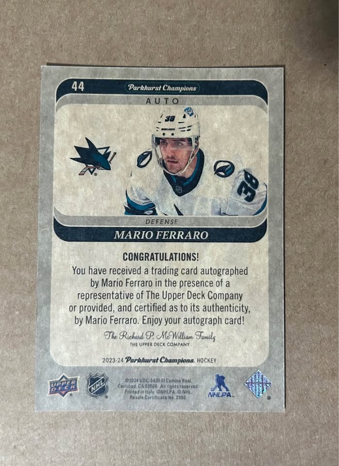 1 / 21 / 2Buy & Sell2023-24 Parkhurst Champions Mario Ferraro Auto - Sharks2023-24 Parkhurst Champions Mario Ferraro Auto - Sharks$15Please check out my other cards. The more you buy, the better price you get. Each card will come in a penny sleeve and top loader.WHERE TO MEETHomeView MapSELLERverifiedTylenWolseley1074 reviews0 chats·0 favorites·3 viewsSEND CHAT TO SELLERHi Tylen! I’m interested in your listing.Hi Tylen! I’m interested in your listing.Get the Karrot app to chatSign In to chat