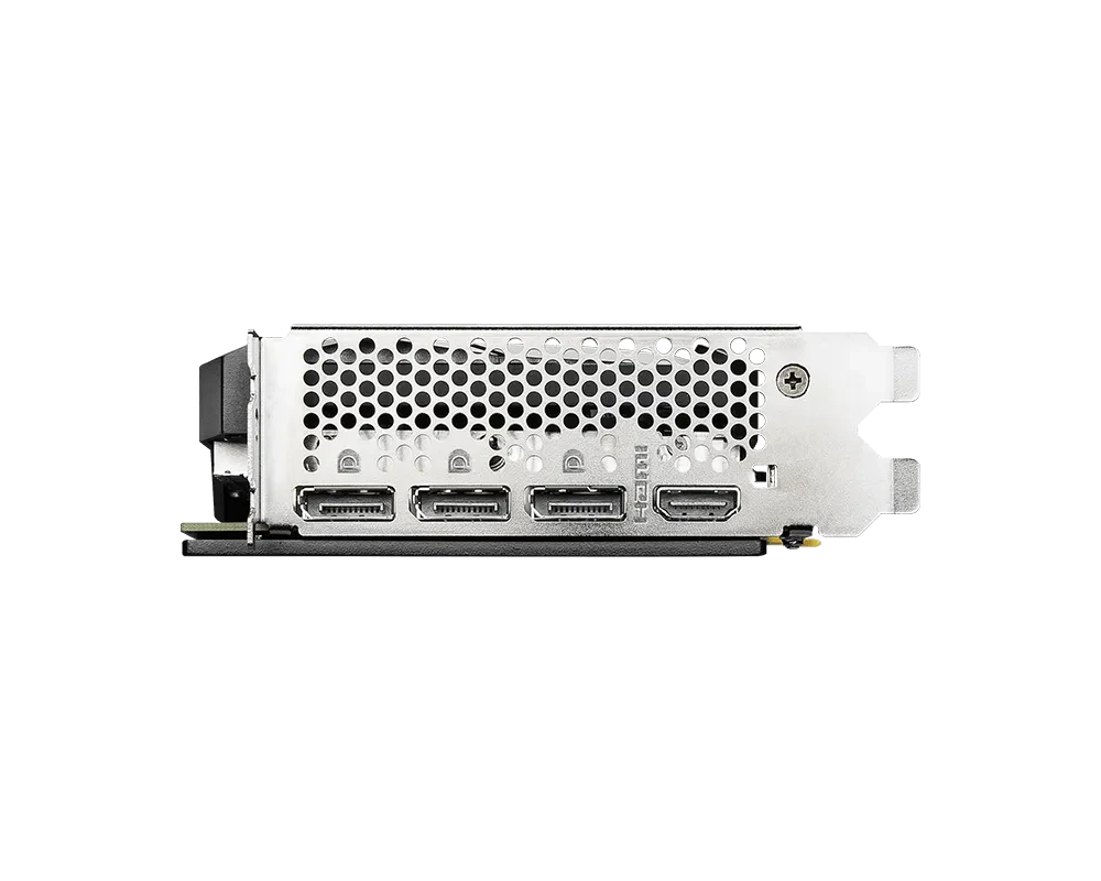 MSI GeForce RTX 3060 Ti Ventus 3X OC graphics card. Features 8GB GDDR6 memory. Includes multiple display outputs for connectivity. Ready for demanding games and applications!