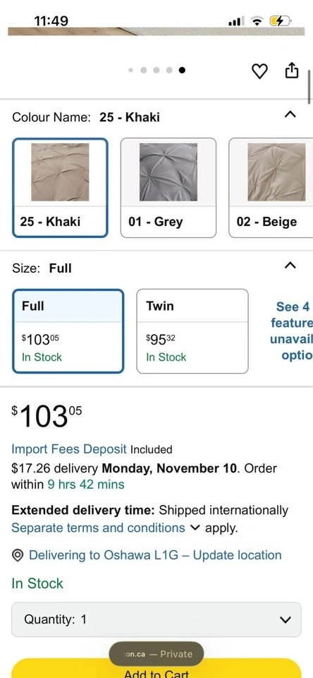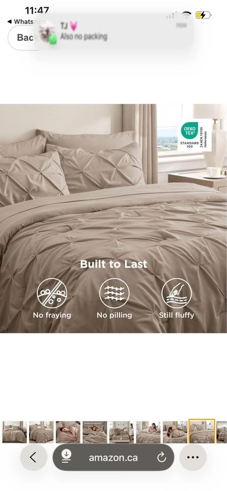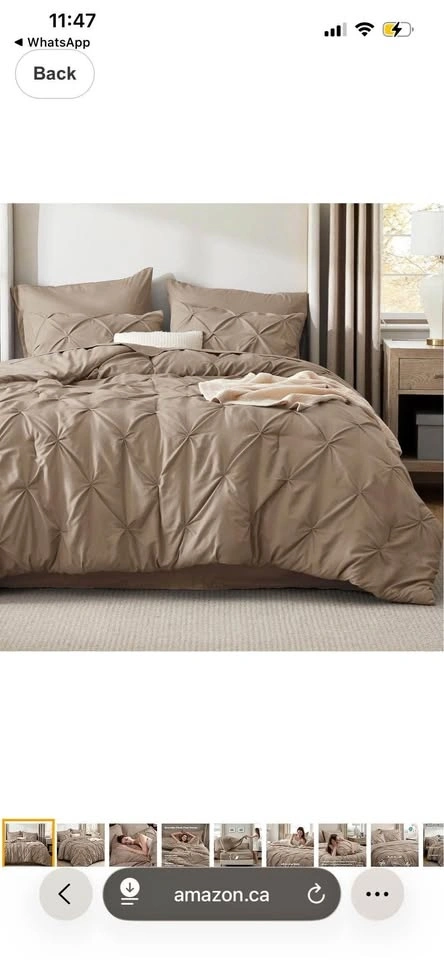 Buy & SellBedsure Full Size Comforter Set - 7 PiecesBedsure Full Size Comforter Set - 7 Pieces$59Khaki pintuck bed in a bag set including comforter, sheets, pillowcases & shams. Let me know if you're interested!WHERE TO MEETCheck LocationView MapSELLERverifiedJuneDonevan731 review1 chats·0 favorites·13 viewsSEND CHAT TO SELLERHi June! I’m interested in your listing.Hi June! I’m interested in your listing.Get the Karrot app to chatSign In to chat