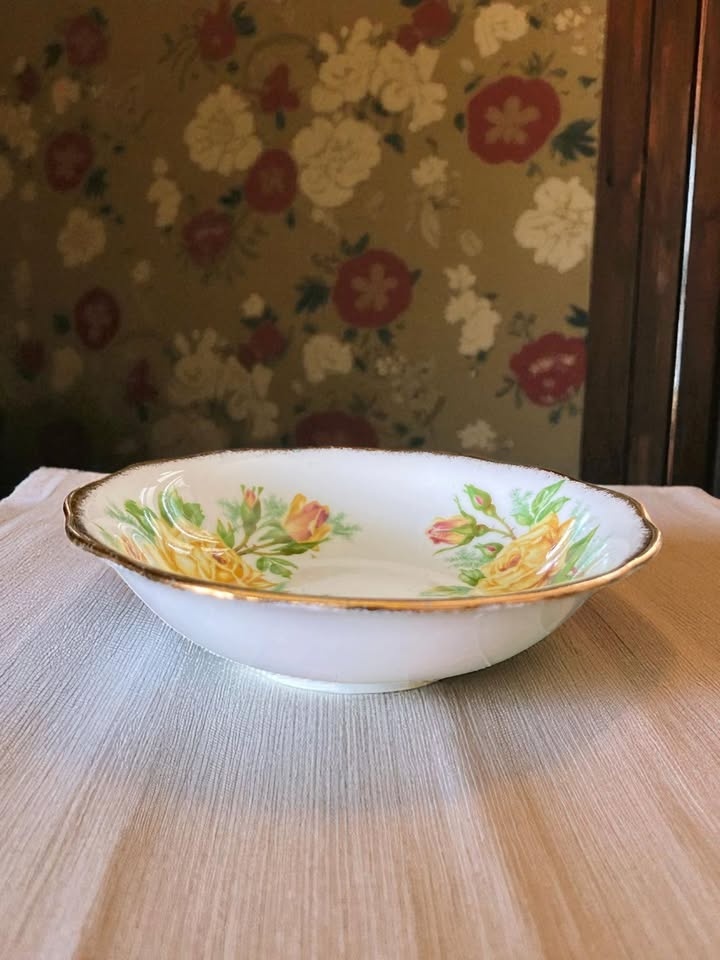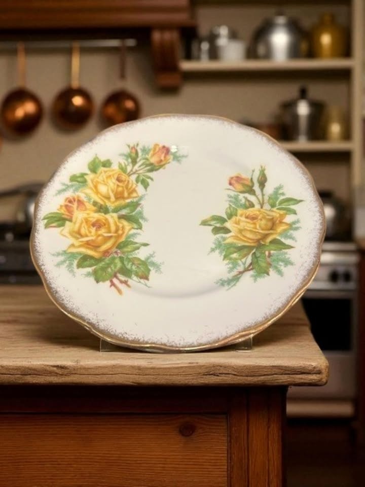 Bring timeless elegance to your table with these beautiful dishes and teacups from the discontinued Royal Albert “Tea Rose” collection. Featuring a classic yellow rose design with gold gilded edges, this fine bone china set was Made in England in the 1980s and is now a highly collectible, rare, discontinued pattern.