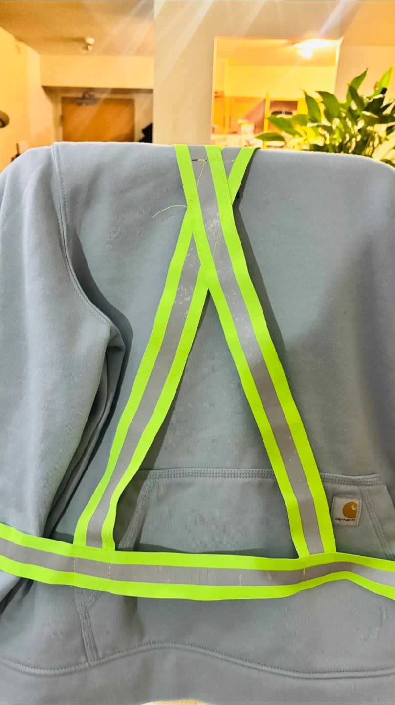 This safety straps have a bright neon yellow and silver reflective straps across the front and back. The adjustable buckle closure secures the chest strap. Great for visibility!