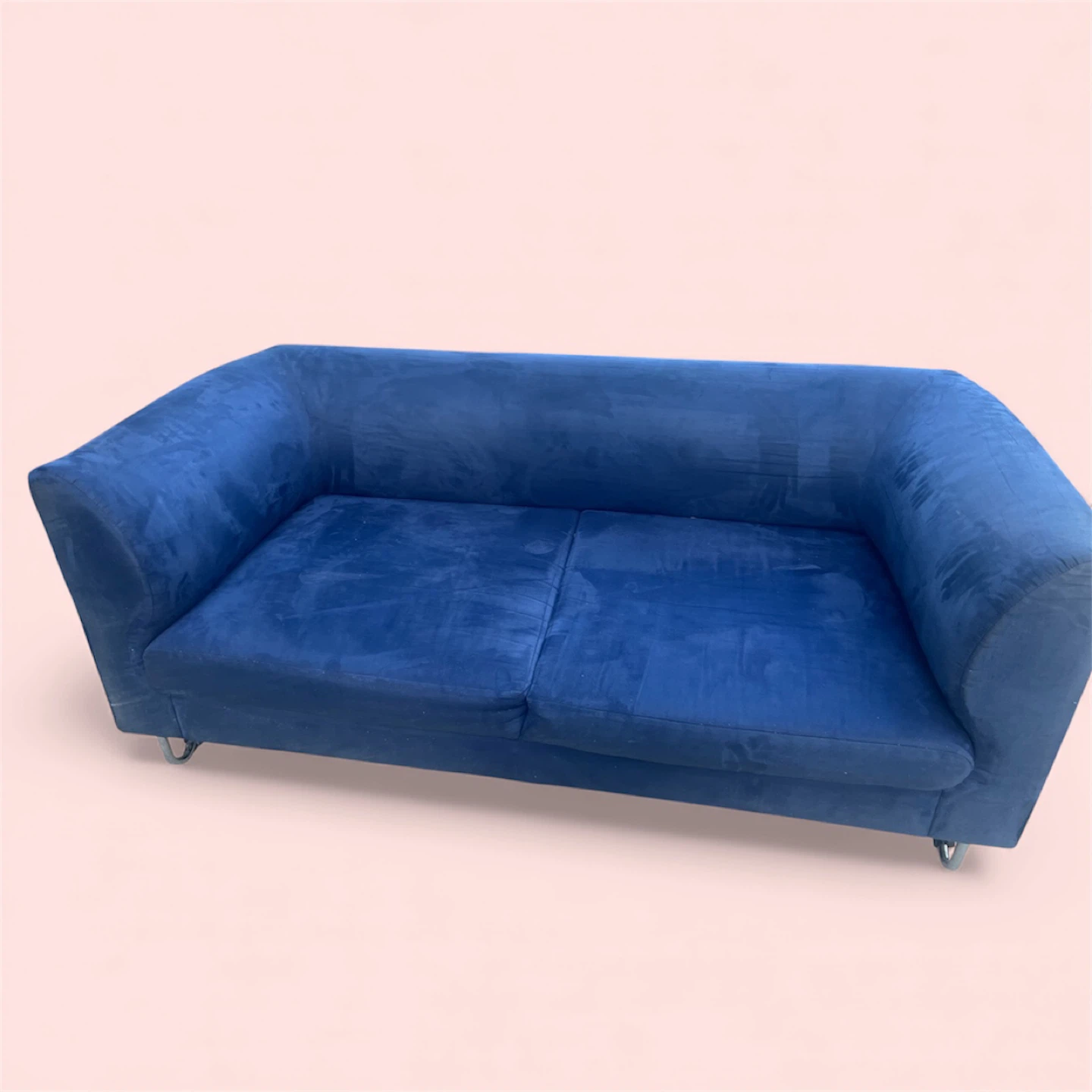 Selling a comfortable blue sofa with a matching ottoman. This set is perfect for a living room or den. The sofa and ottoman are in good condition and ready for a new home!