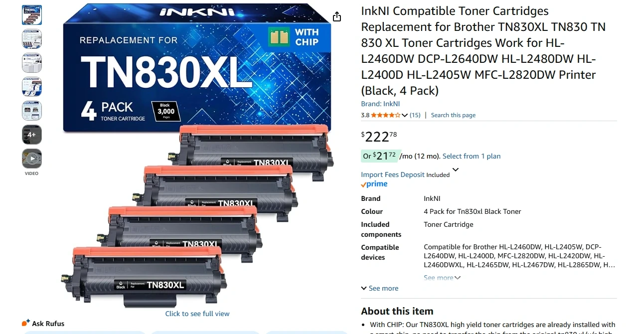 Compatible MFC-Series Printers: INKNI TN830 TN830XL TN-830XL toner Compatible with Brother MFC-L2820DW, MFC-L2760DW, MFC-L2807DW, MFC-L2820DWXL, MFC-L2900DW, MFC-2900DWXL, MFC-L2980DW Printers