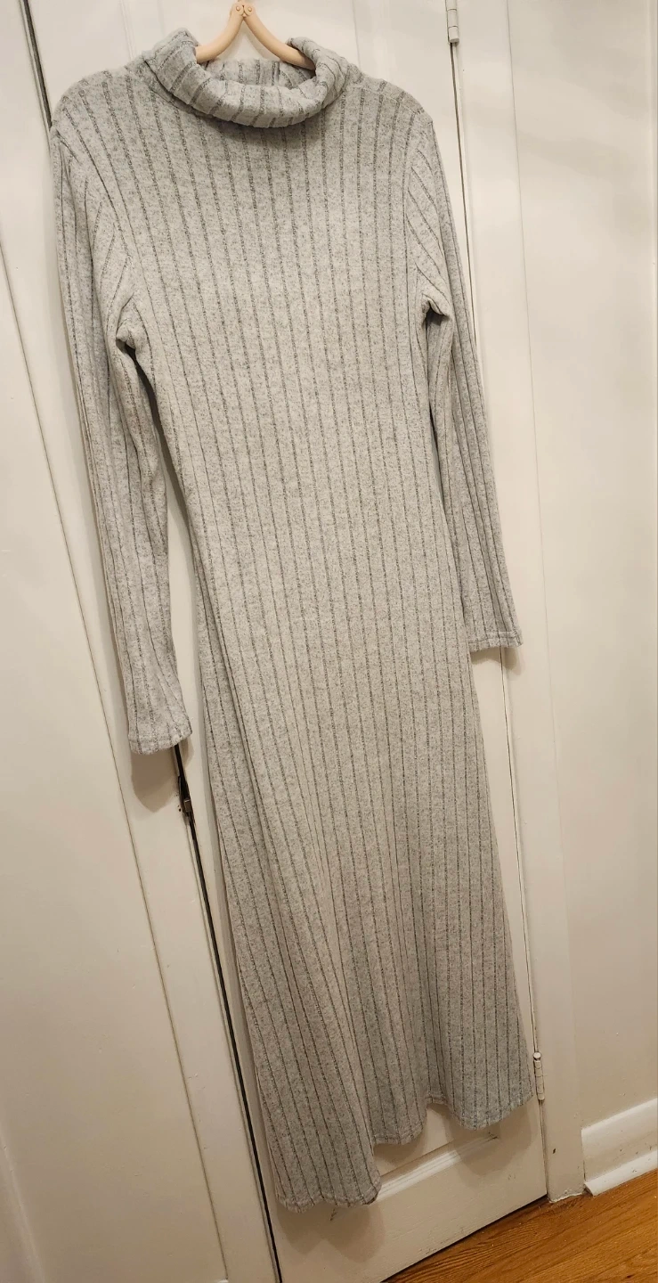 NEW Shein Grey Ribbed Turtleneck Maxi Dress - Size L